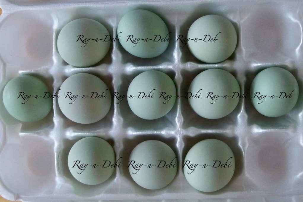I don't have "robin blue" eggs. They are not olive either. They fall some where in between. On my computer the uploaded picture is pretty true to color. On my husbands across the room the color is much more vibrant then they really are. To see more of my pictures go to my Araucana photo album on my profile