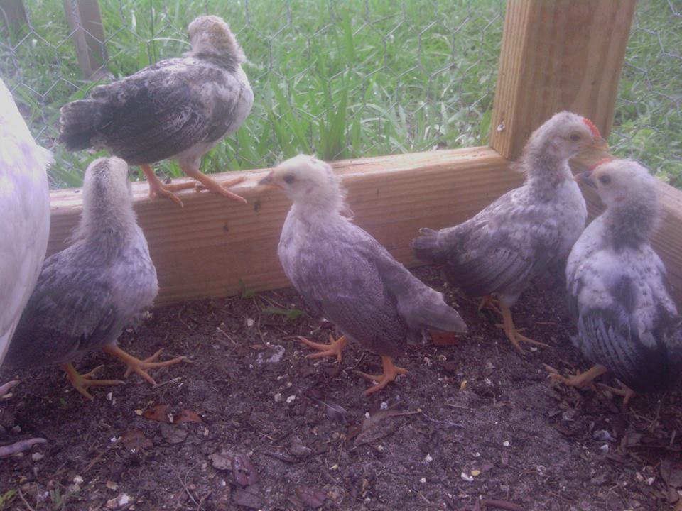 Here are some of the other chicks, Chaotic and Nova are to the far right, they are the two positive roosters. Cupquake is on the wooded platform and the two chicks at the bottom are the two girls! There is a other girl but she is away from the shot. 6 chicks in total!