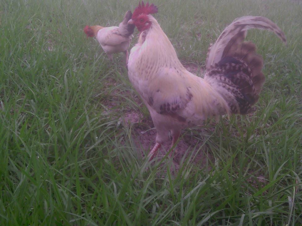 I was sitting, feeding chicks some grass clippings when Chaotic came up to me and started pecking lightly at my fingernails. I started to go 'aww' at this because of his gentle pecking so i gave him a small petting under his breast, just a quick petting since of his cuteness. And then something really amazed me after that, Chaotic made me laugh until my sides hurt when he started to wobble onto my fingertips while shaking his rump in the process. He then finally placed both of his feet on my fingertips, clutching my two fingers tightly then started to sort of mount my hand, er, fingers. I laughed when he got off my hand then stared at me and my fingers as if to say 'You see that? I just did that.'