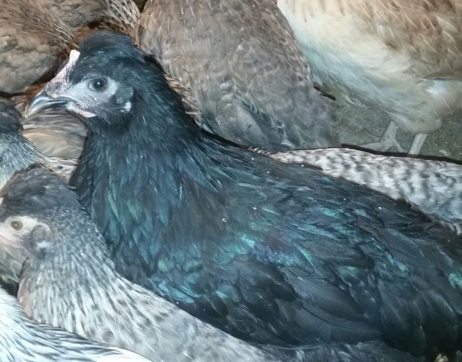 This is a black australorp rooster over a cream legbar hen, she is a very friendly girl that basically looks like a black australorp with a cute crest. The one unique thing about her is a very deep voice, it's very easy to tell her chattering from other birds. She was raised with several younger birds and played mother to the little ones that were about four weeks younger than her.