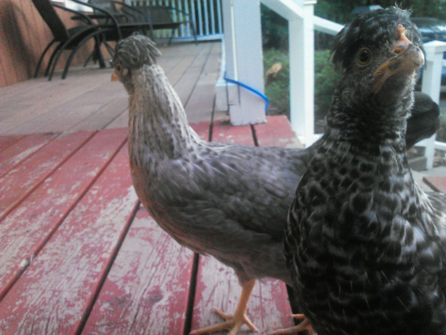 I also have a similar cross of Legbar x Silver Spangled Hamburg... My pullet looks very similar. I would have thought the silver would be dominate. Curious why they are so dark.My CL x Silver Spangled Appenzeller Spitzhauben is growing up to be so cute. She is roughly 10weeks old now. She is the sweetest most friendly chicken in the entire chicken yard. She even sits up in the kitchen window every night before dark to check us out. Its rather cute. Also curious to know if anyone has thoughts on the genetics that make this cross produce black chicks with white markings (at least in the females) I don't have a male of this cross?