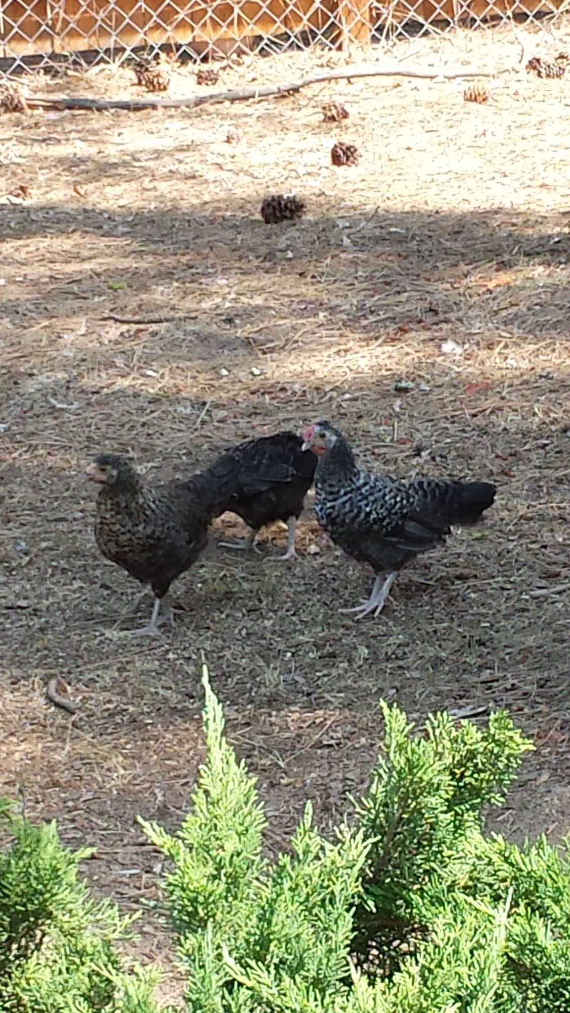 Okay, terrible pictures.. But you will get the idea. Silver Spangled Hamburgs have a rose comb, First pic.. I posted Mom, and the young chicks.. As well as today...Broody Mom, shy breed. Will try to get some today..![]()