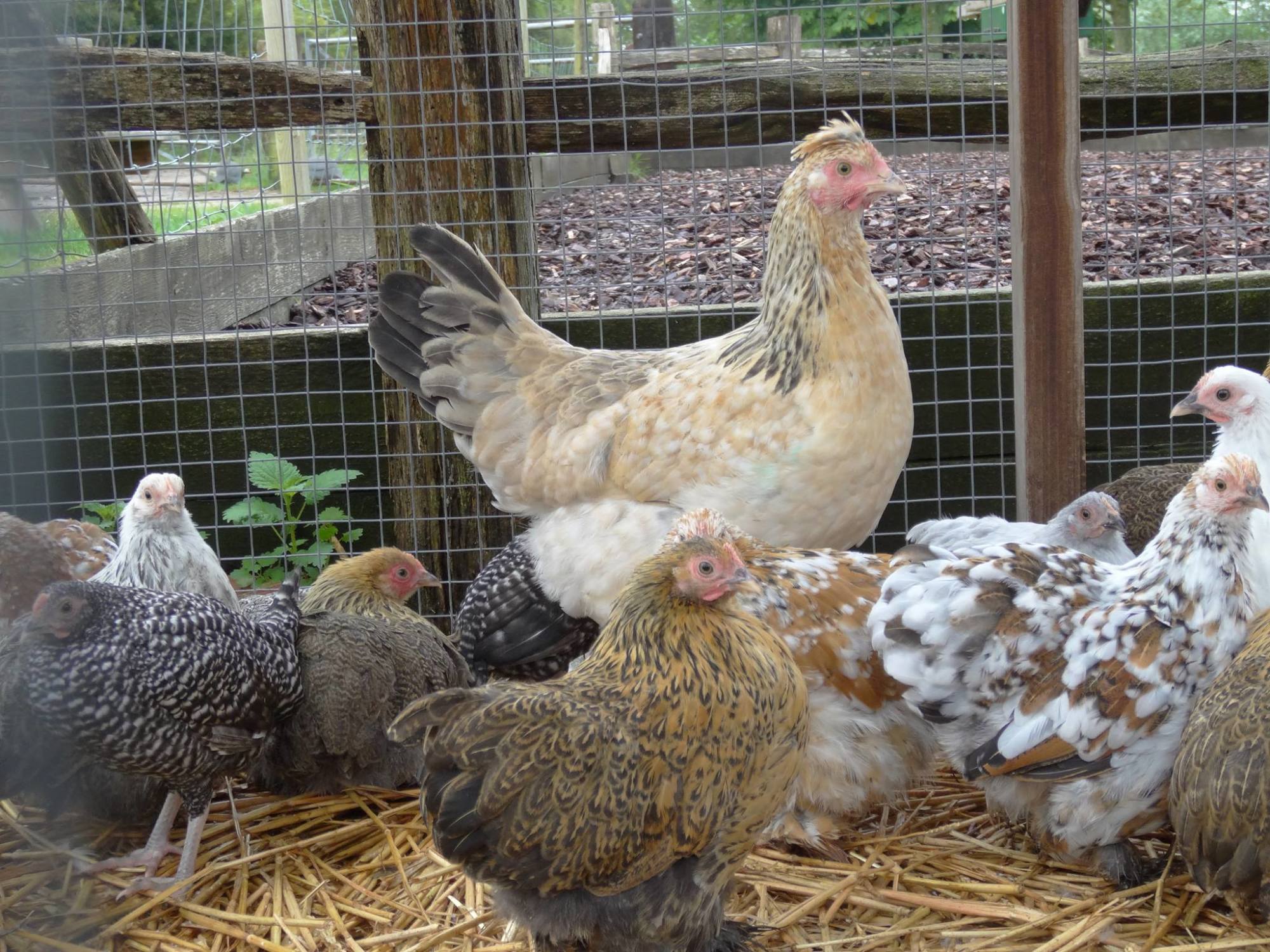 I don't keep Sussex and have never made this cross, but I know lots of people in the UK with this cross. Here is a Pullet and a Hen. I don't see any photos of the cockerels or chicks.
