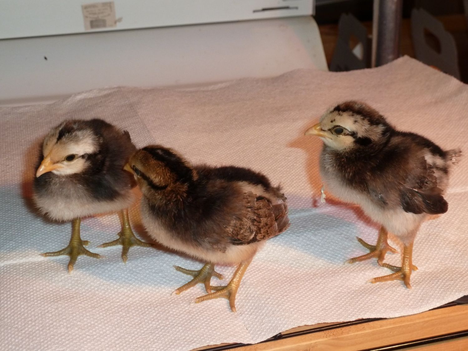 Over the weekend, I had eleven chicks hatch. Three cream legbars with normal colors (1 cockerel and 2 pullets), two white-sport cream legbars (1 cockerel and 1 pullet), one cream legbar X buff orpington cross, and two that I believe are SFHbut may be crosses.