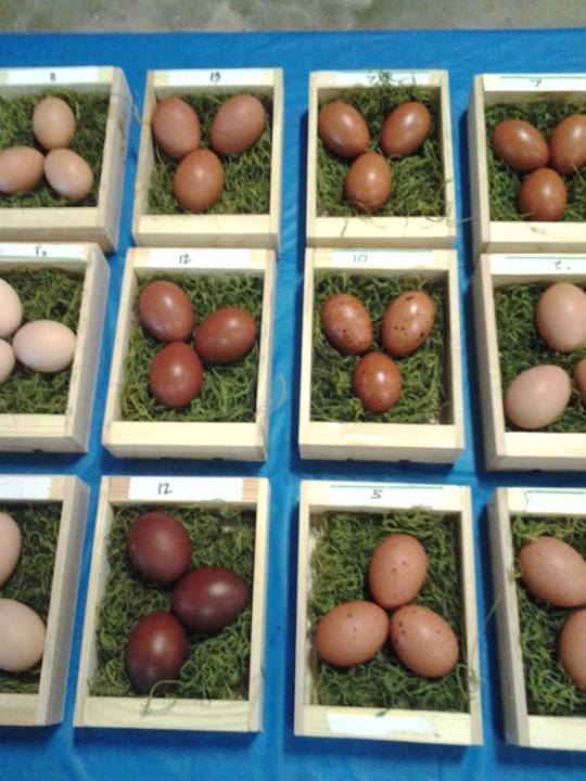 Entry #12 were our egg entries at the an egg show in January. The dark entry on the bottom row were from the Tammy Kostas line. They were a #8 on the Marans scale. Our entry right above them were Cottage Hill line eggs and they were about a #5 on the Marans scale. The other Marans entries (the middle two columns and the top entry on the right column) were 3-4 on the Marans scale.