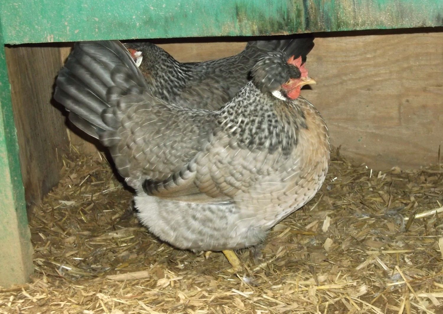Yep...great looking girls. Great depth to their body, great tails, great combs, great ear lobes, great crests. The legs look a little short though. The back also looks short and doesn't show the straight line with the downward slope. I like a lighter crest color that has more cream on it to match the cream on the hackles. I also don't like the black lacing on the breast feathers.
