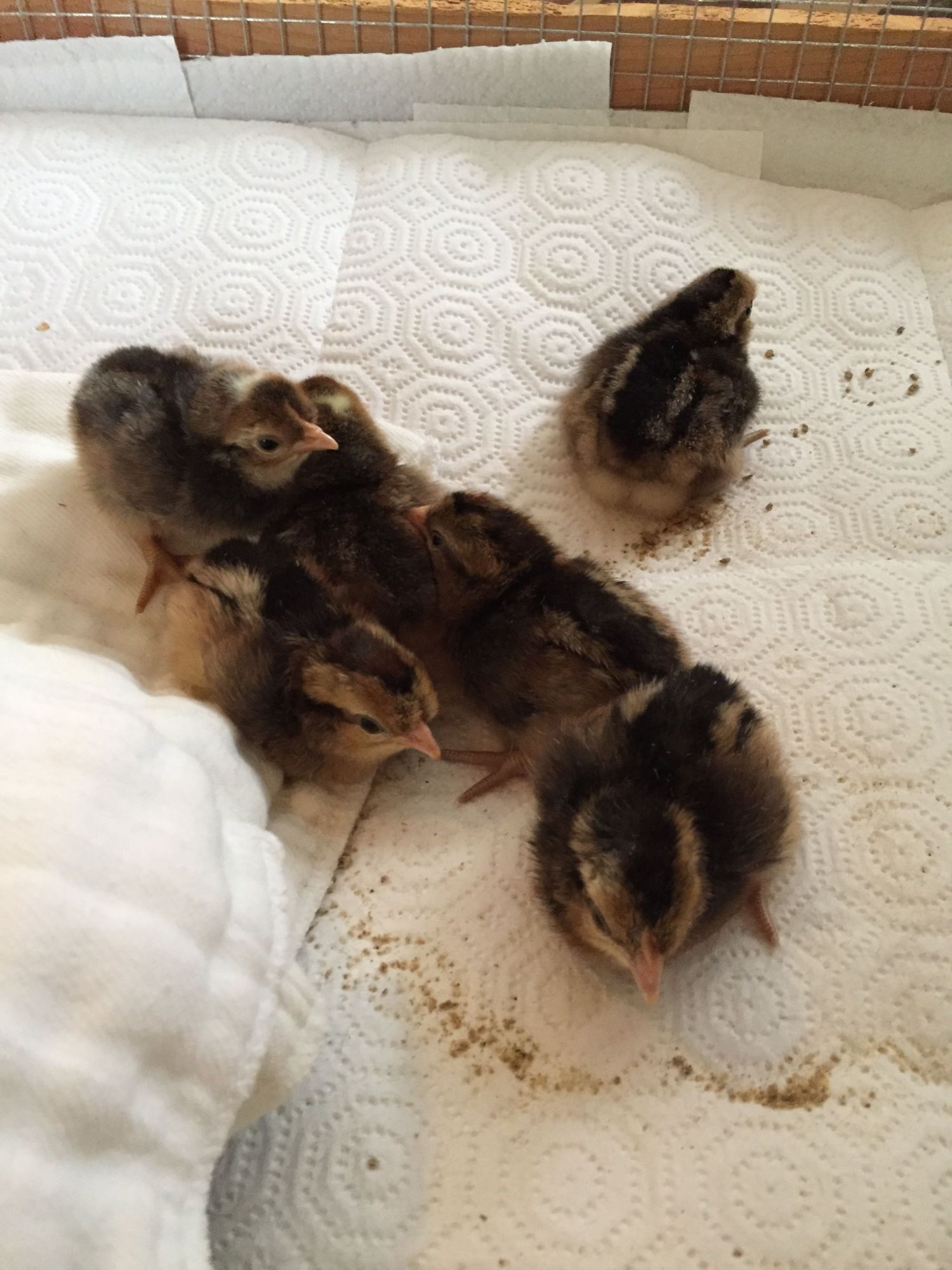 Baby photos!!!! Of seven fertile eggs that went into lockdown, six babies so far (2 boys, 4 girls). GREAT markings! This is very good, as the entire point of this hatch was to get pullets from Lissa.