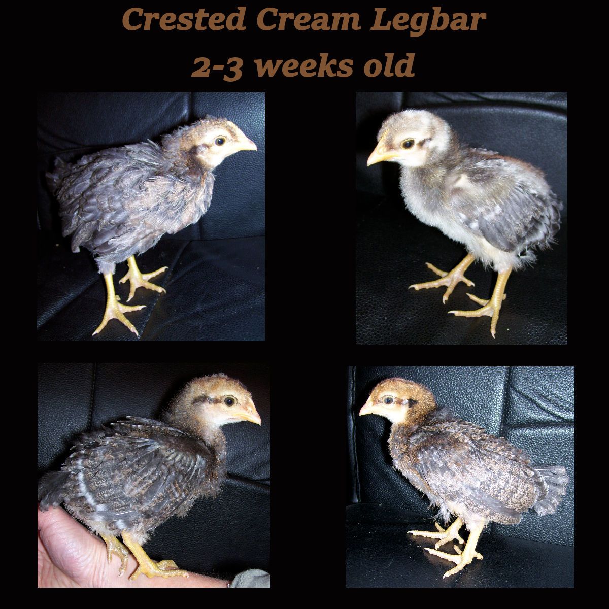 Love your chick picts - and they do look like they have some dark pigments -- as do the parent birds. I like the upright type of CL as well in the hens and I'm very impressed by the tail barring in the last hen you picture.