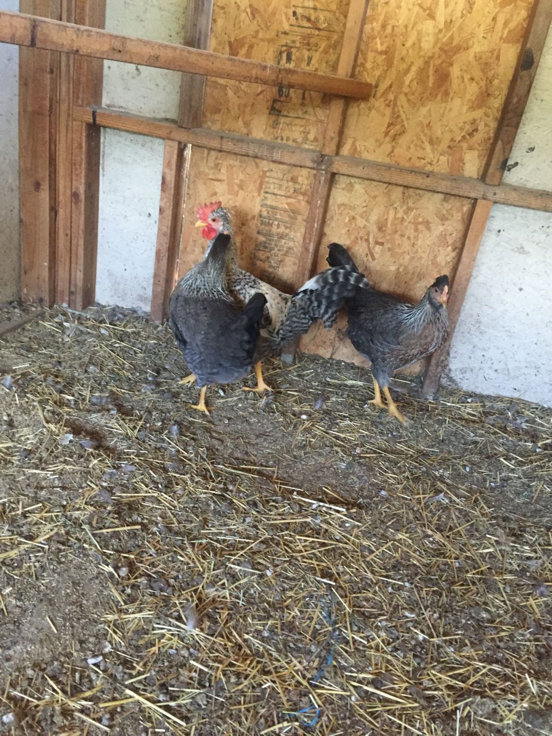 I'm pretty happy with my little roo right now and I've been surprised by how straight his comb has stayed considering how large his crest is. The girls are doing good too, and looking good. They are 10 weeks old now.