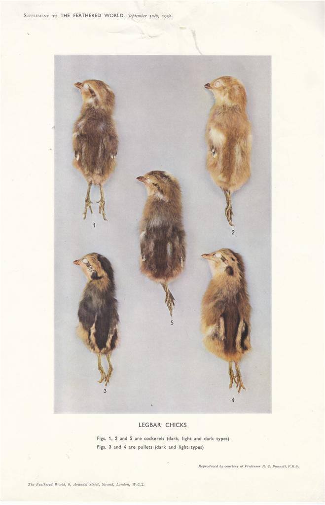 We photo document the down colors and how each bird feathered out. We also did a lot of research on in the process got our hands on a 1947 publication in the Journal of Genetics written by the developer of the Legbar Breed. He indicated that the first year of breeding he crossed English Brown Leghorns and imported hatching egg from a high production Dutch Brown Leghorn strain. In the 2nd year of breeding the Dutch Brown Leghorns with the F1 birds. He noted these two down types kept records on them too. He was hatching about 20 times as many chicks as all that he concluded was that the light down type was a wild type primary color pattern from the English Leghorns and the dark down type was a wild type primary color patter from the Dutch Leghorns. The dark type was dominant and the light was recessive. For auto-sexing he noted that the pullets has more distinct stripes. While the stripes were not as distinct on the pullets of the lighter type he noted that the lighter cockerels made a greater distinction between the boys and girls.