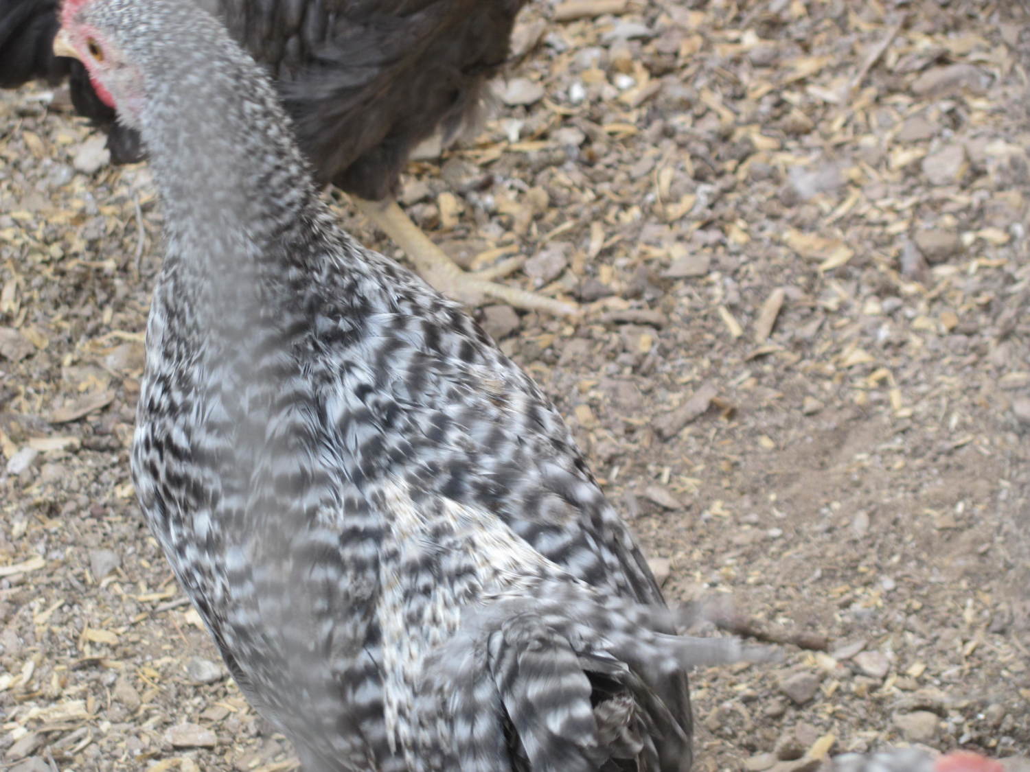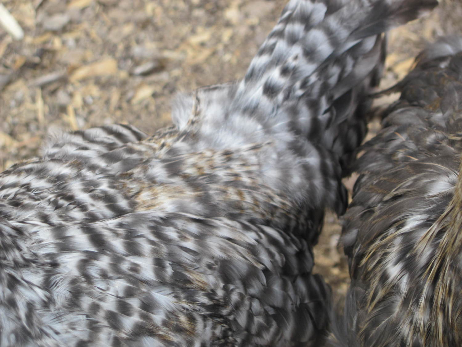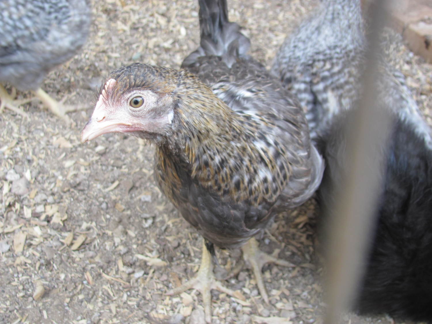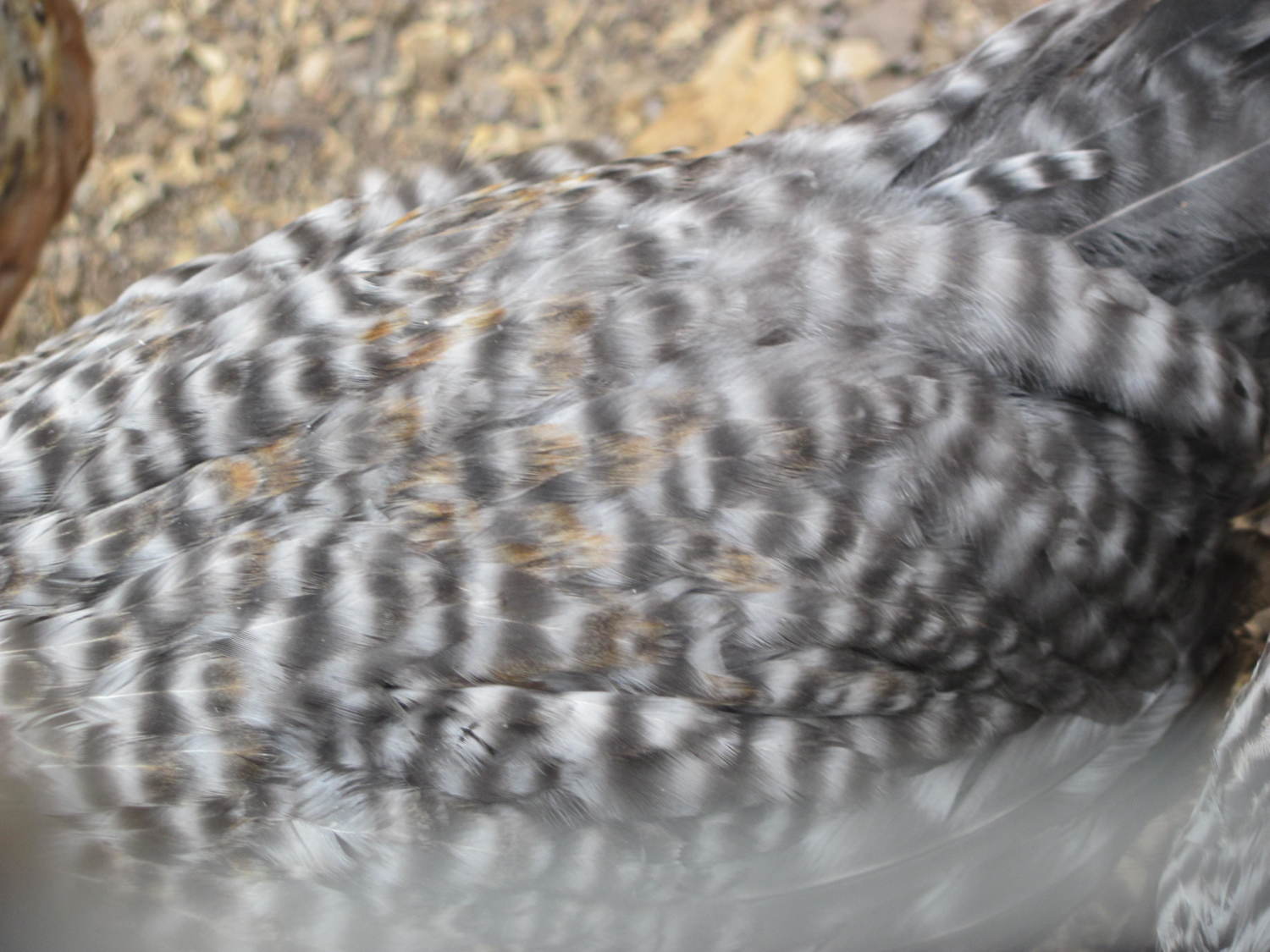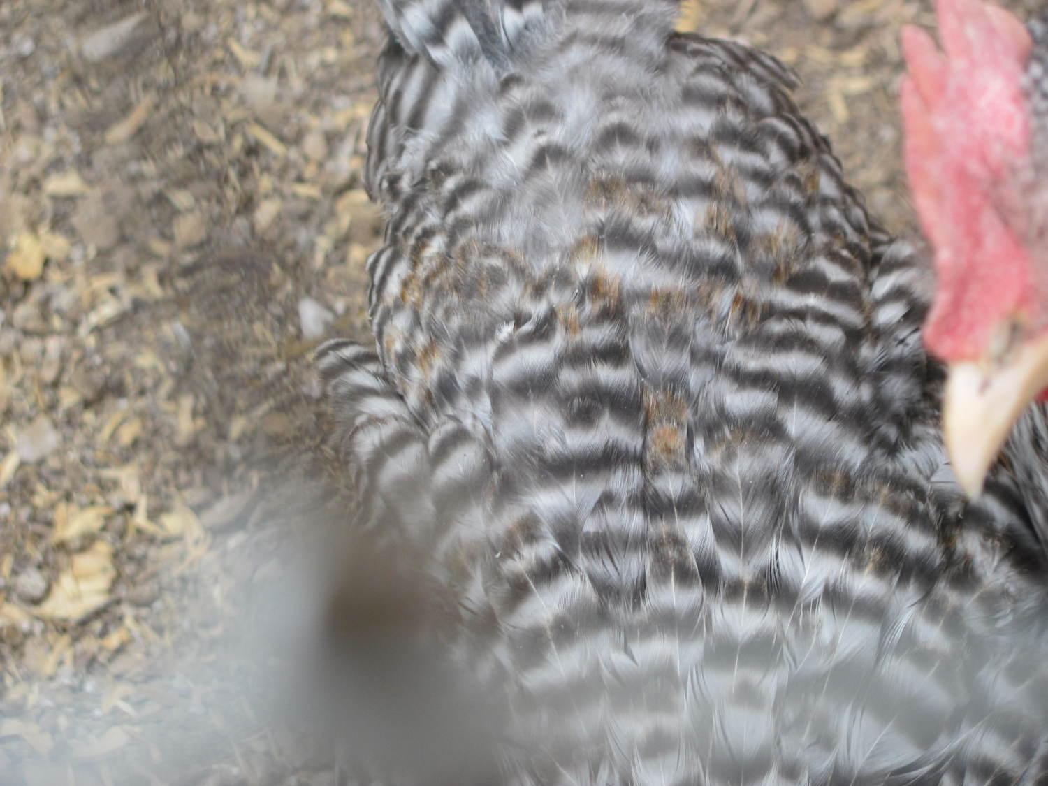 Here are more pics of the odd ball Black Breasted Pullet. Now her chest is black. and if you notice how the adult feathers coming in on the base of the neck has really light almost white barring. She always had gold feathers but now that the adult feathers are coming in they look diffrent.