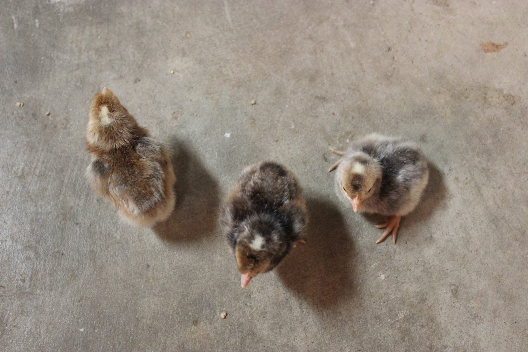 Here are 3 of the 4 boys from the hatch, displaying the range of colors I see in my hatches- cinnamon tinted, dark gray, and light gray. I've tagged the light gray one to grow out.