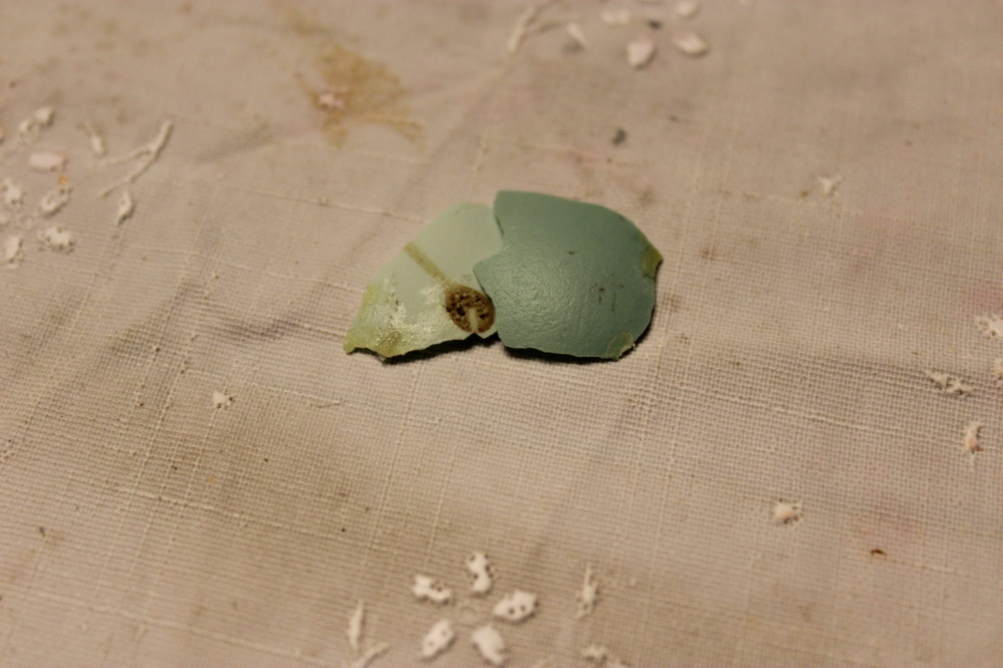Cool!OK pulled the egg out and did some checking. Color didn't change with wetting. Egg was infertile which surprises me.Outside of egg shell, light color on left dark color on right: