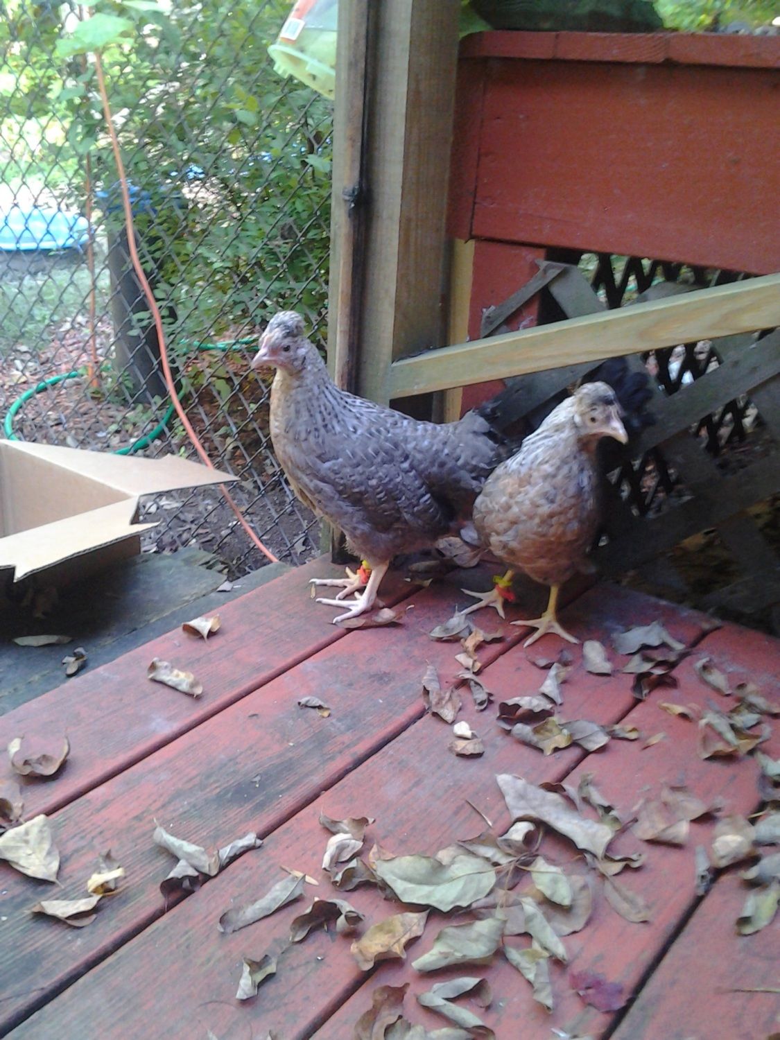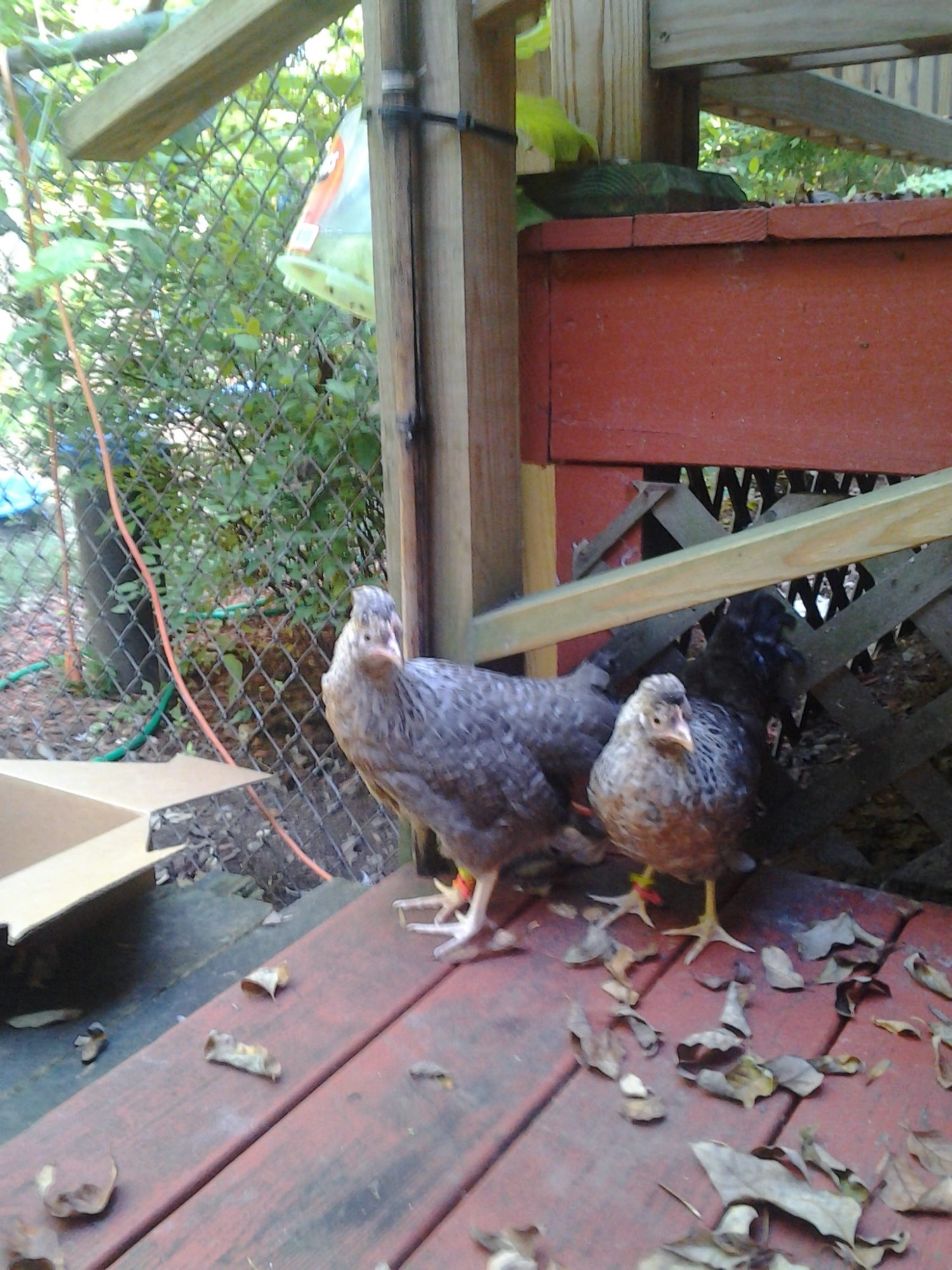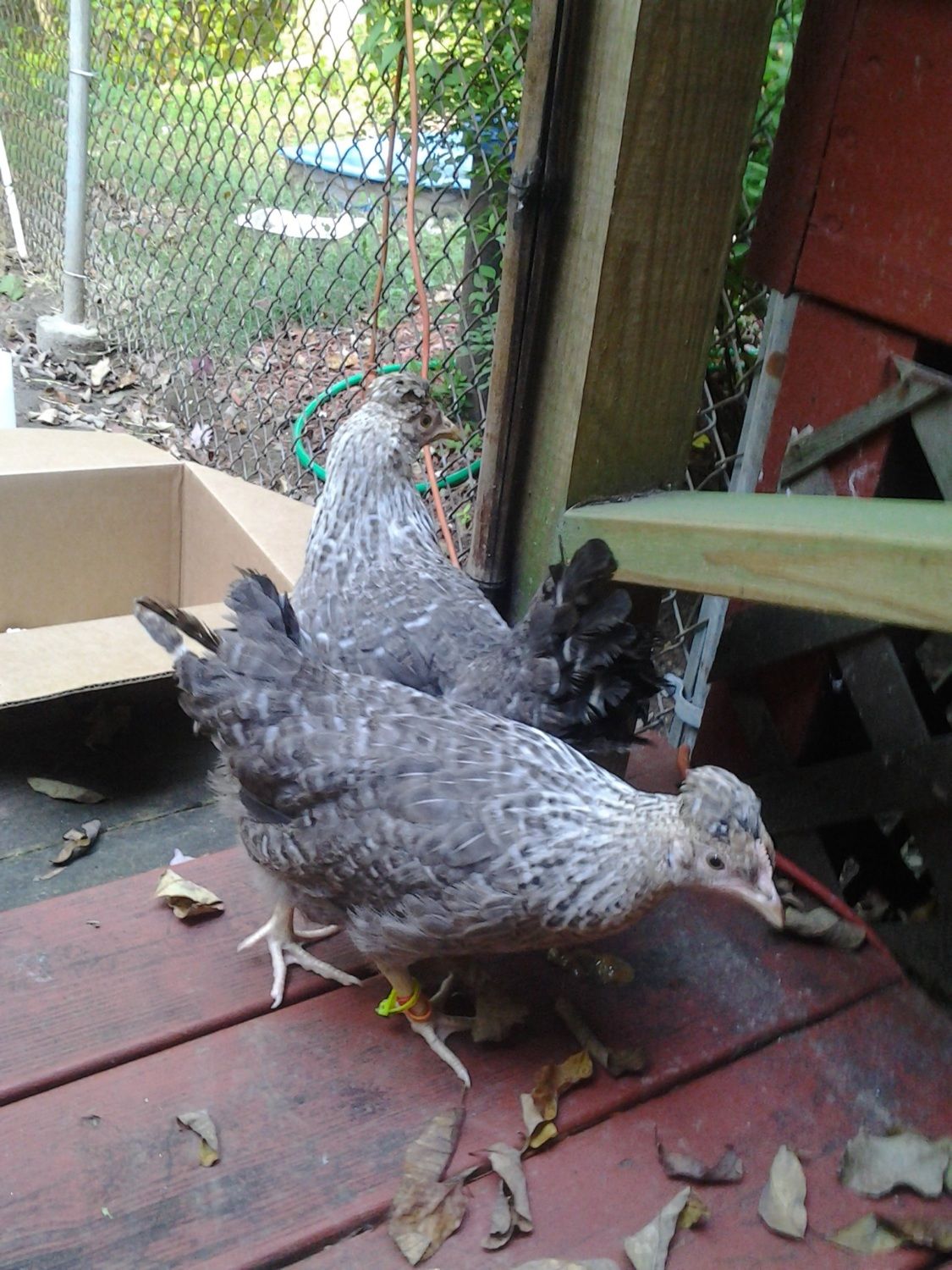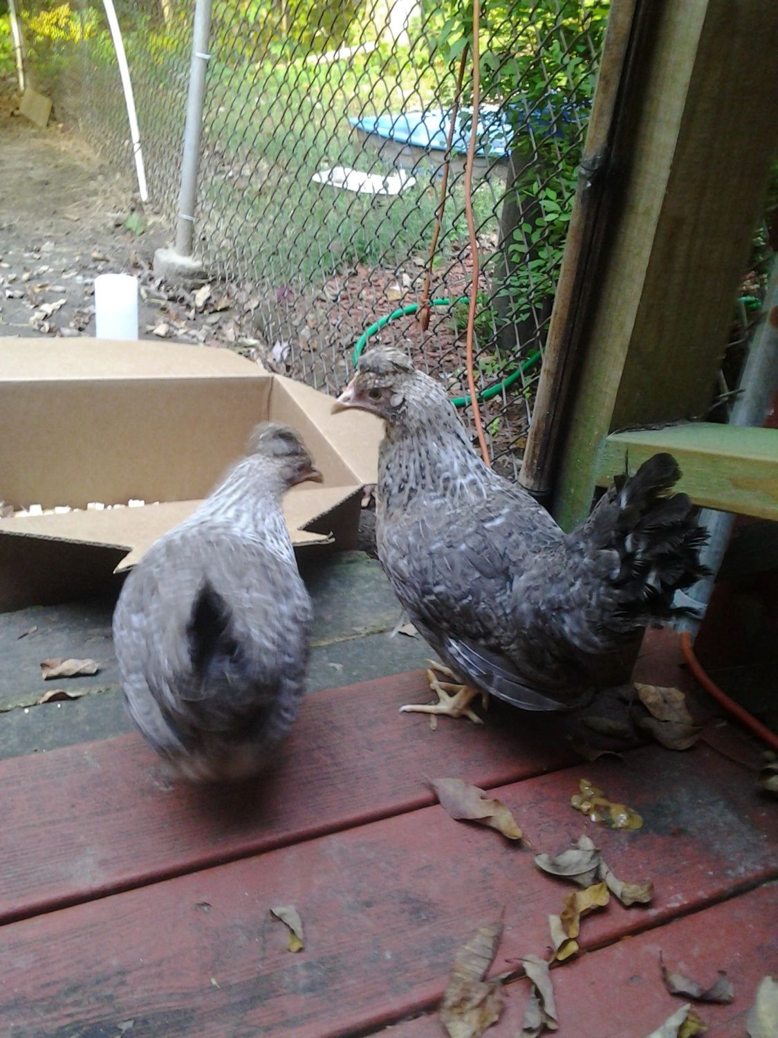 I picked up my 2 new pullets today. They are roughtly 10-12weeks old. I hope I picked good choices. I couldn't decide on which ones to bring home.