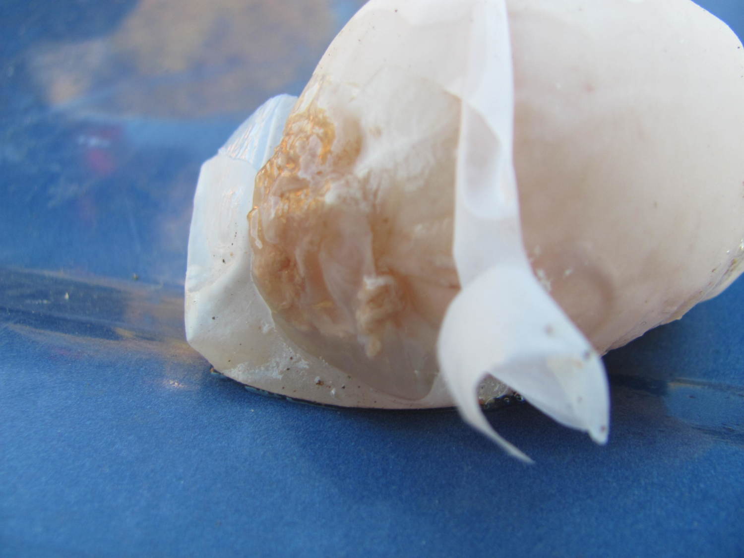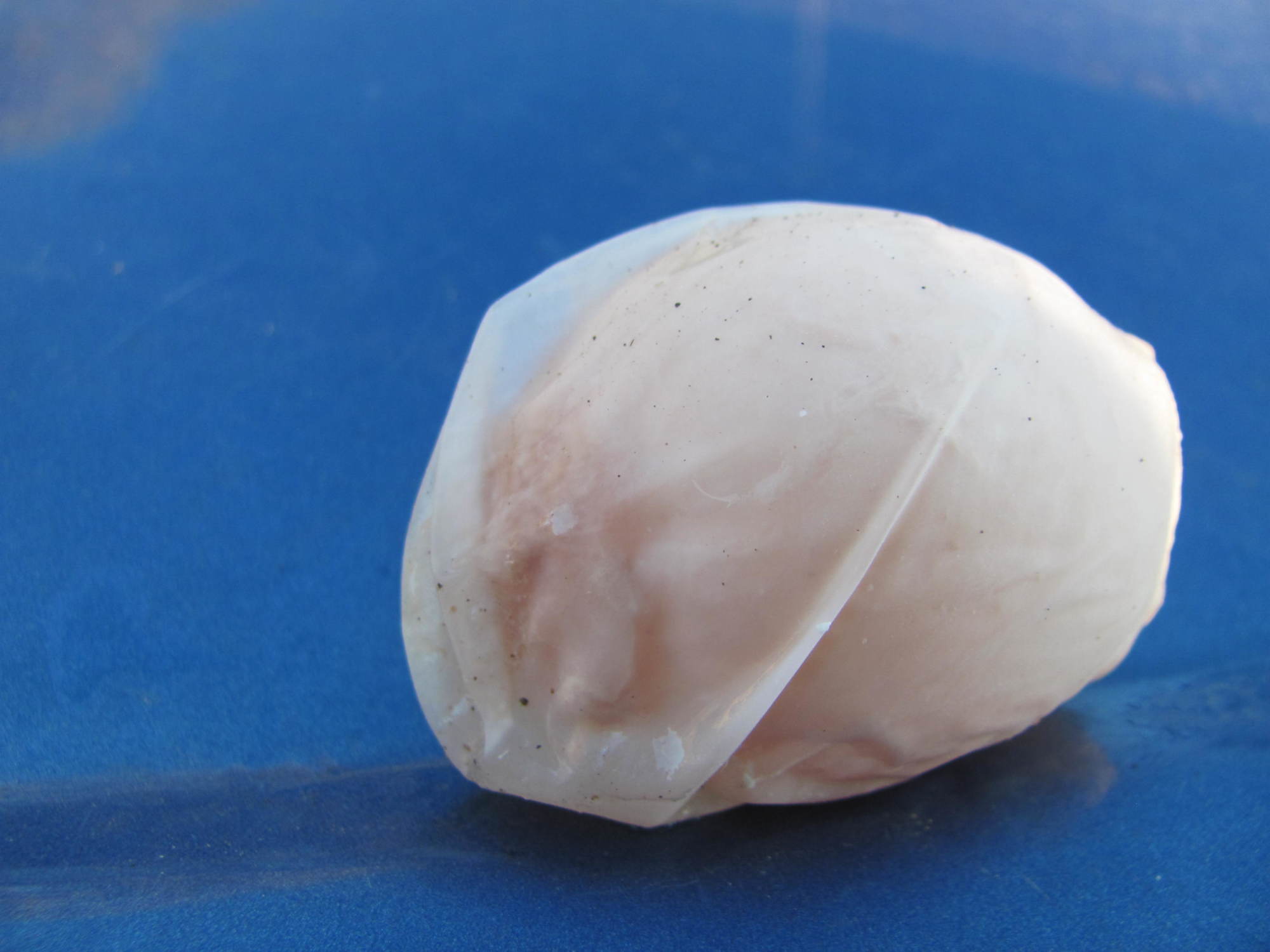 Wow, it looks like it has a second membrane or something. Is there egg white between it and the shell? At first I thought it was wrapped in artificial cobwebbing for Halloween!
