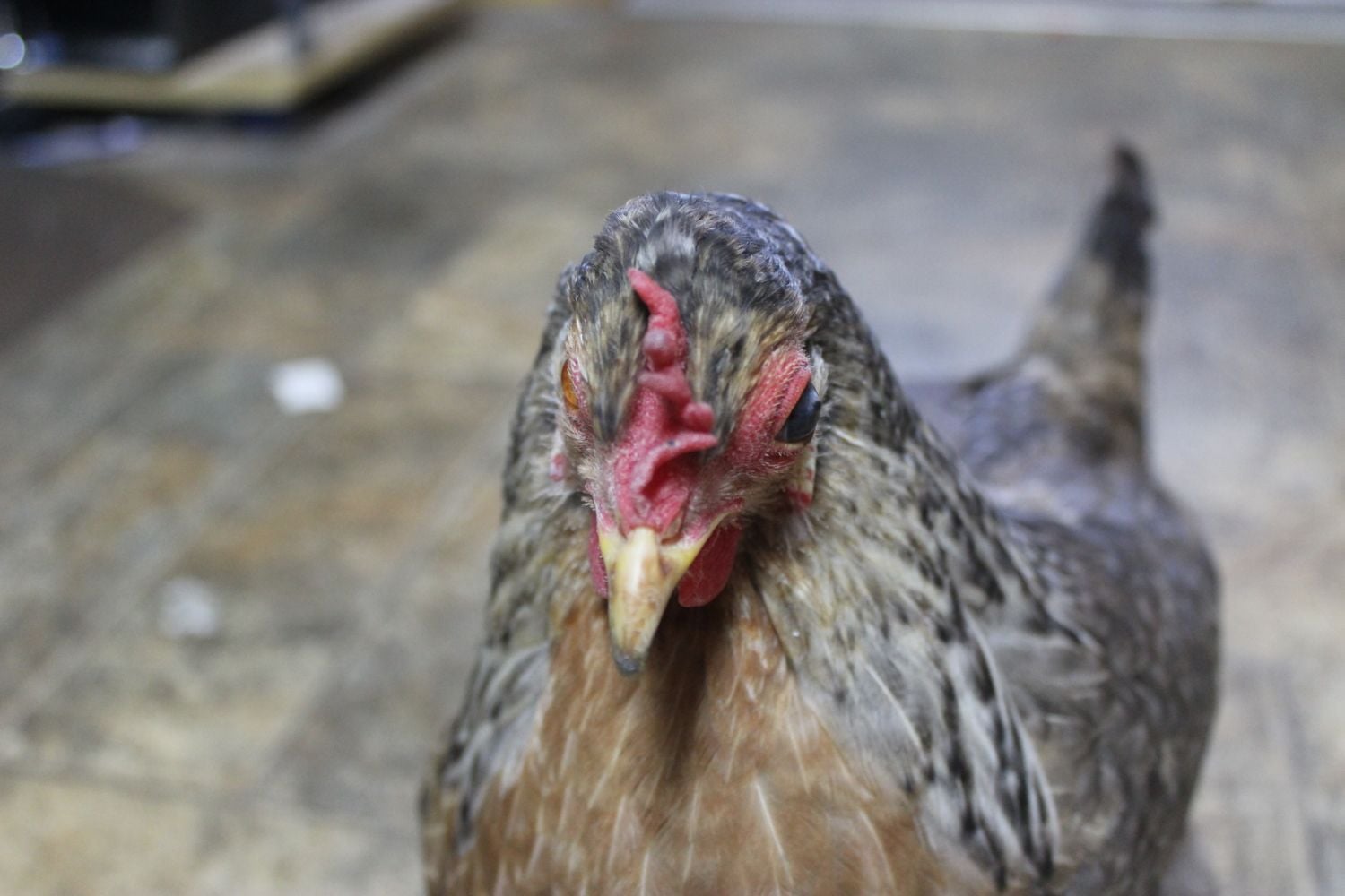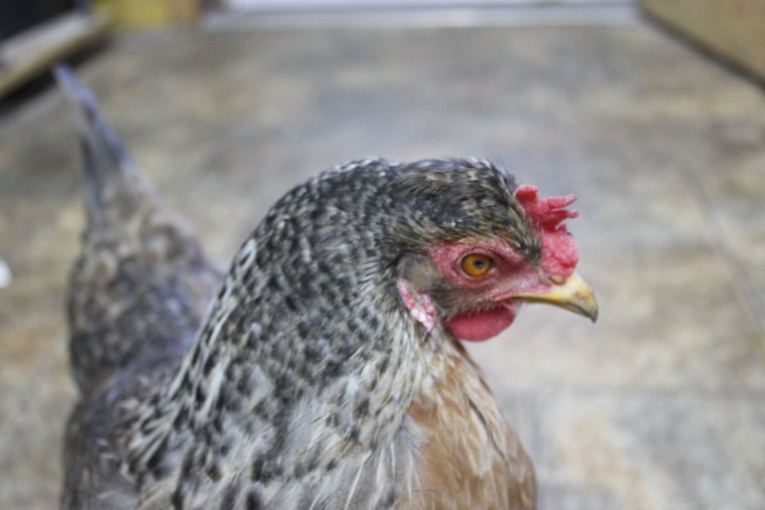 She was the first one in to roost last night so I looked her over and was totally shocked to see her eye. I am applying triple antibiotic cream and Veterycin opthalmic gel three times a day. This is Green Band Girl, my favorite hen.
