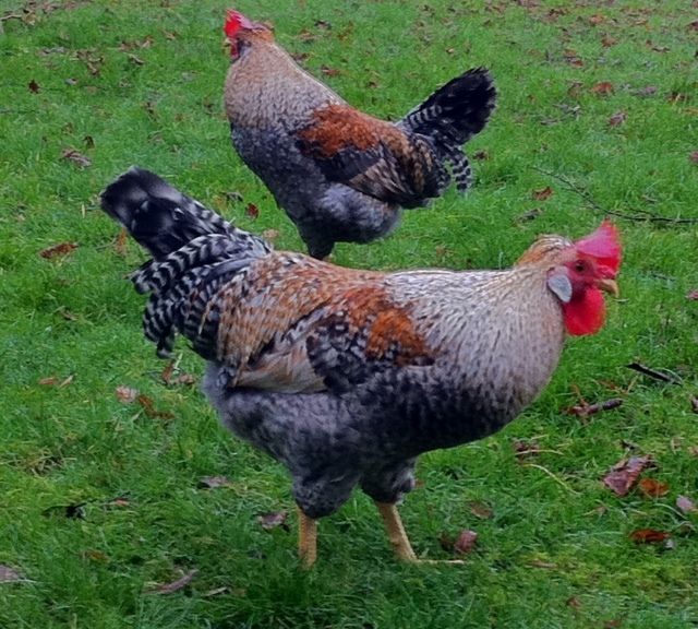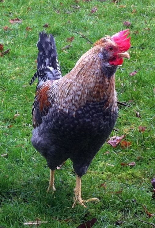 This is my favorite boy (no name yet). He's a bit lighter than his brother and has a better developed tail, a decent crest and a straighter comb.