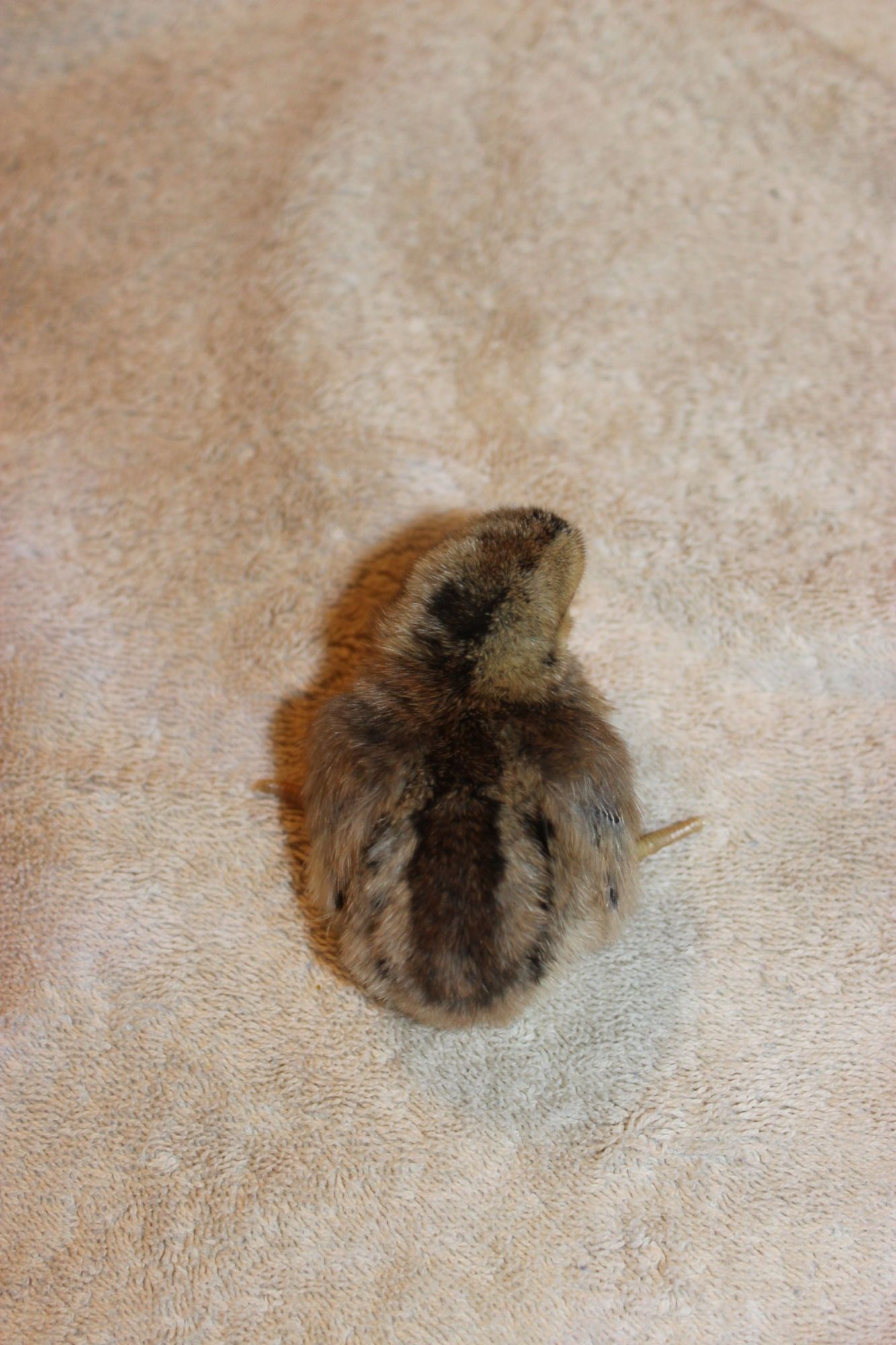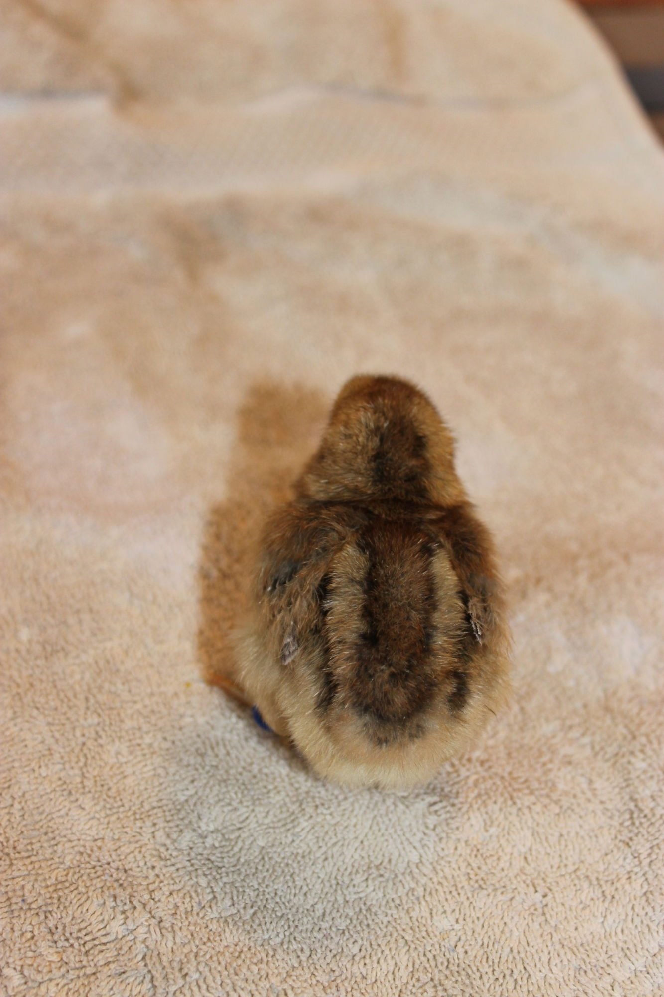 Cream Legbars are an auto-sexing breed meaning you can tell the difference between male at female at hatch. Females have a very distinct and well defined chipmunk pattern sometimes a very small head spot and males have a lighter and less defined chipmunk pattern and a very large head spot. This auto-sexing trait continues from generation to generation in pure CL.