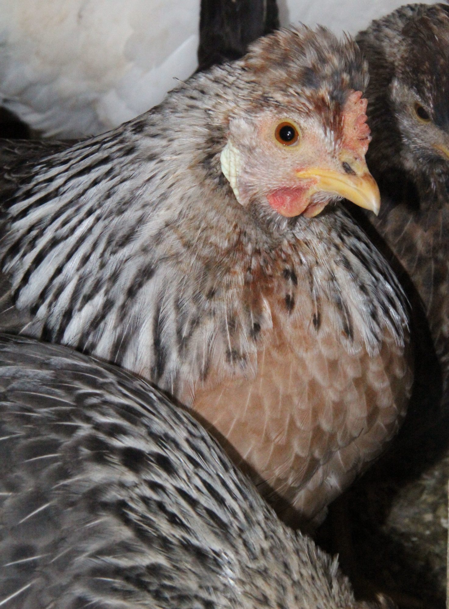 My females have their own issues. I have 2 with black bars on their breasts - one is really bad but overall I am happy with them as a total flock. I gave them a bit of a look-see today and took some photos. I l have about 16 - 18 cream girls to work with depending on what I decide to use. The 4 gold girls will start my layer flock and free range.