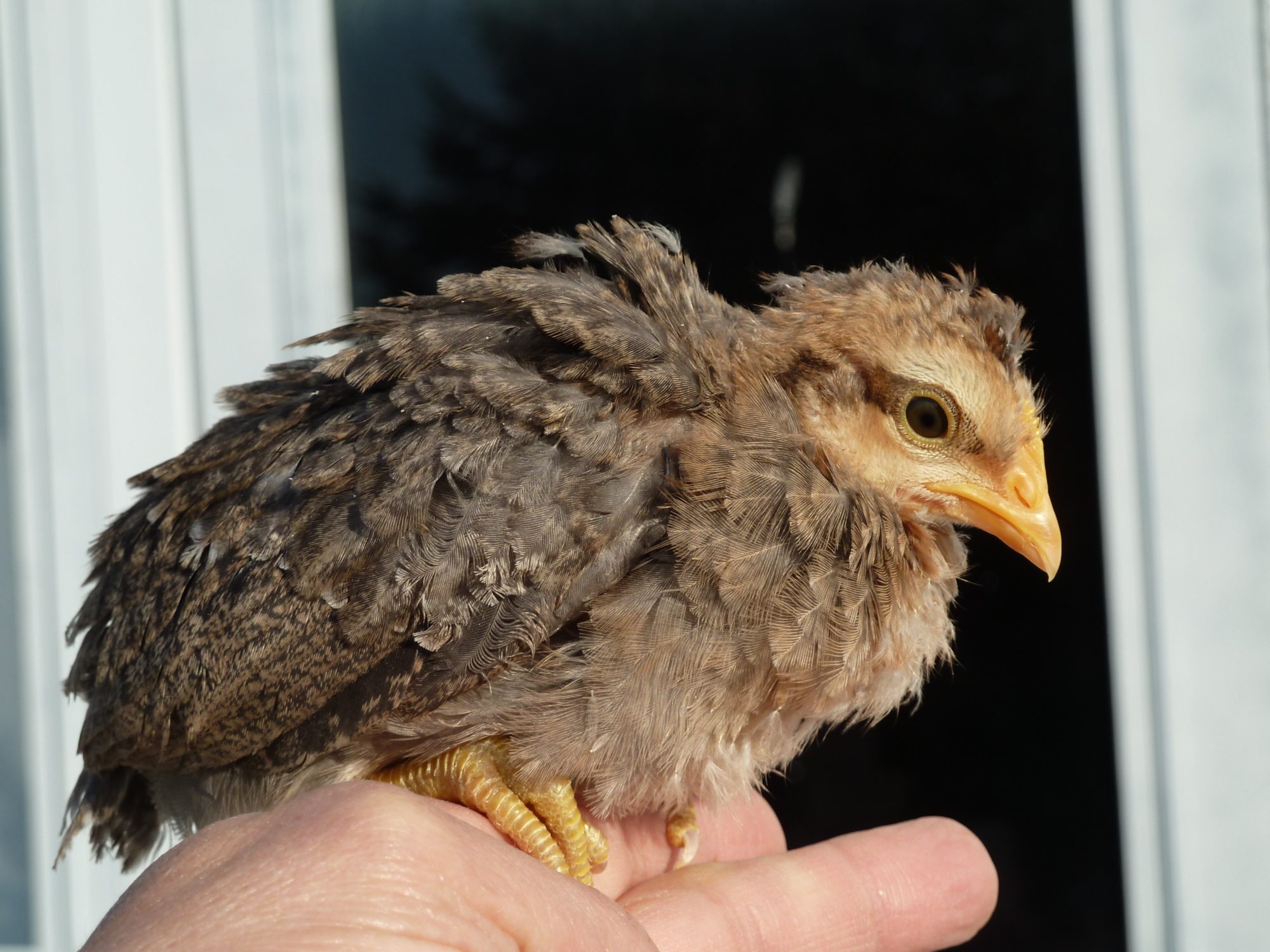 This is 'Tex" the pullet hatched from Curtis. She weighed 6.2 ounces.