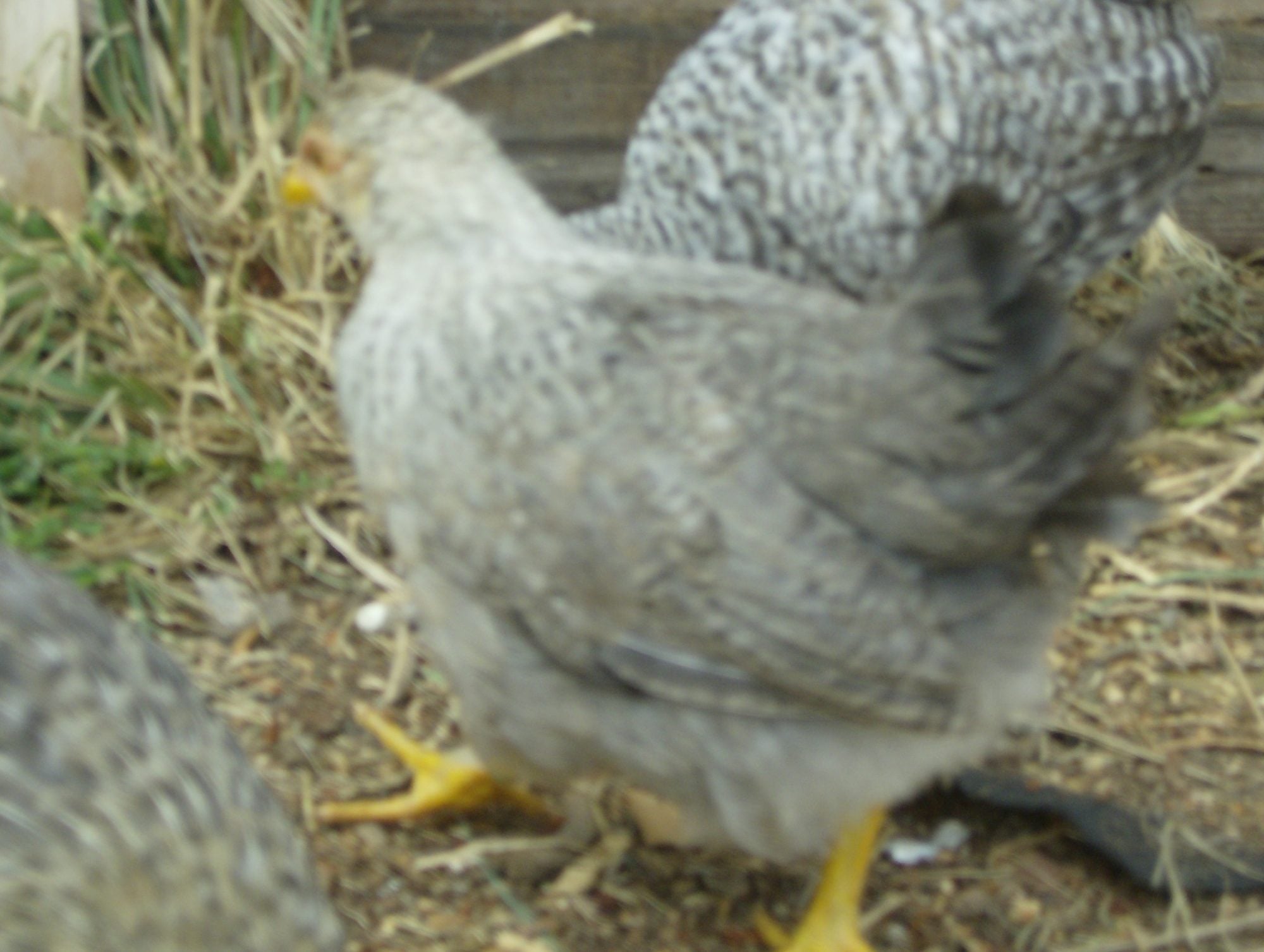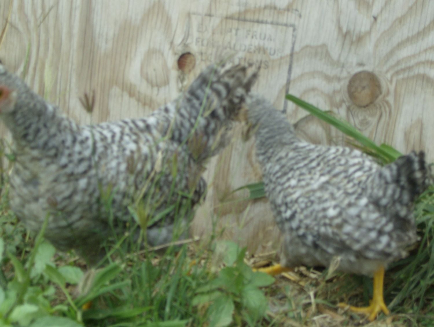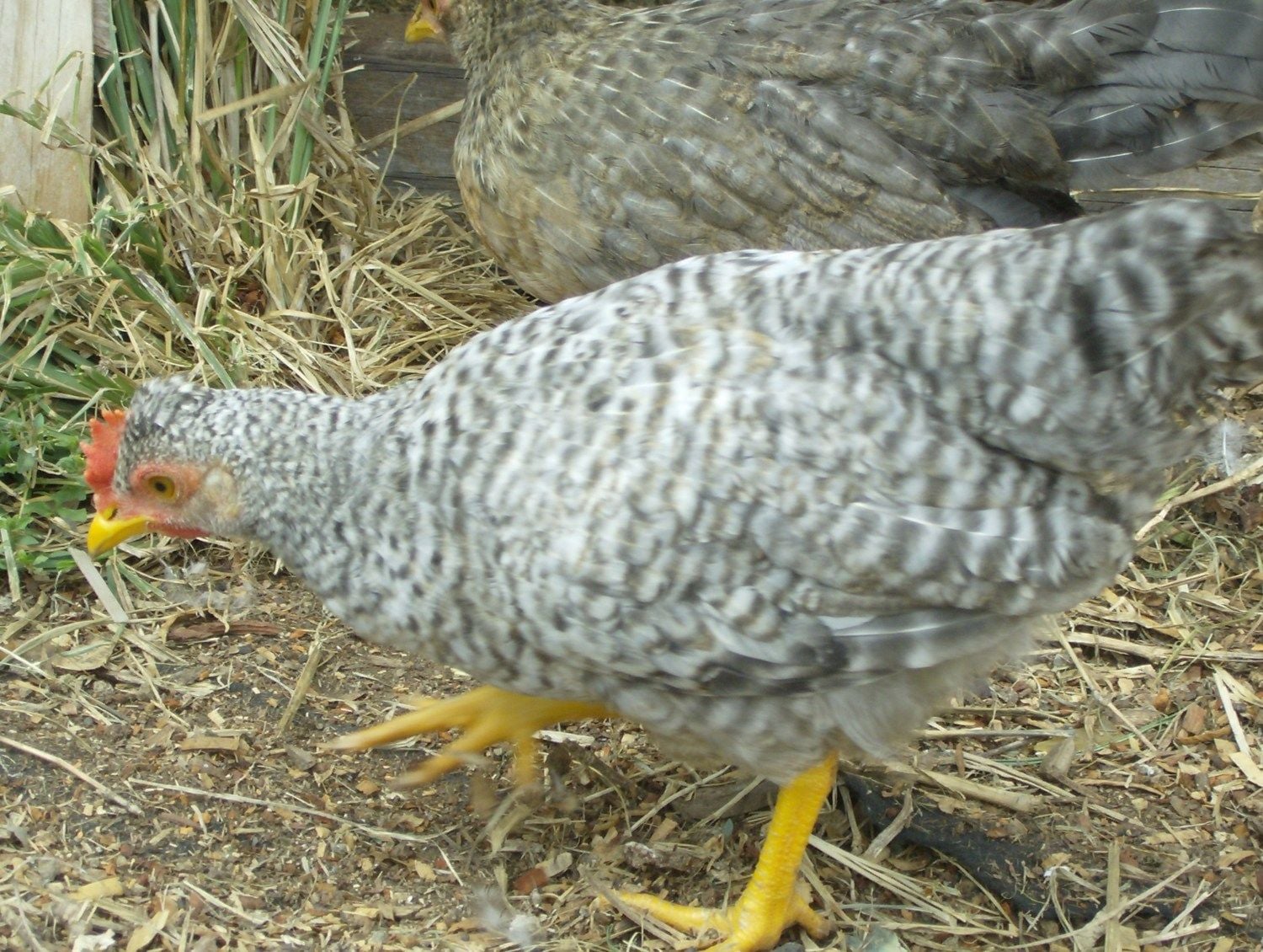 On my screen he looks like he may have some chestnut spotting on the body but that may not be so in person. His barring does not look as precise as the other. But he has a nice crest. Cannot speak to his comb. The other one looks 'nicer' so far but they are still way too young.