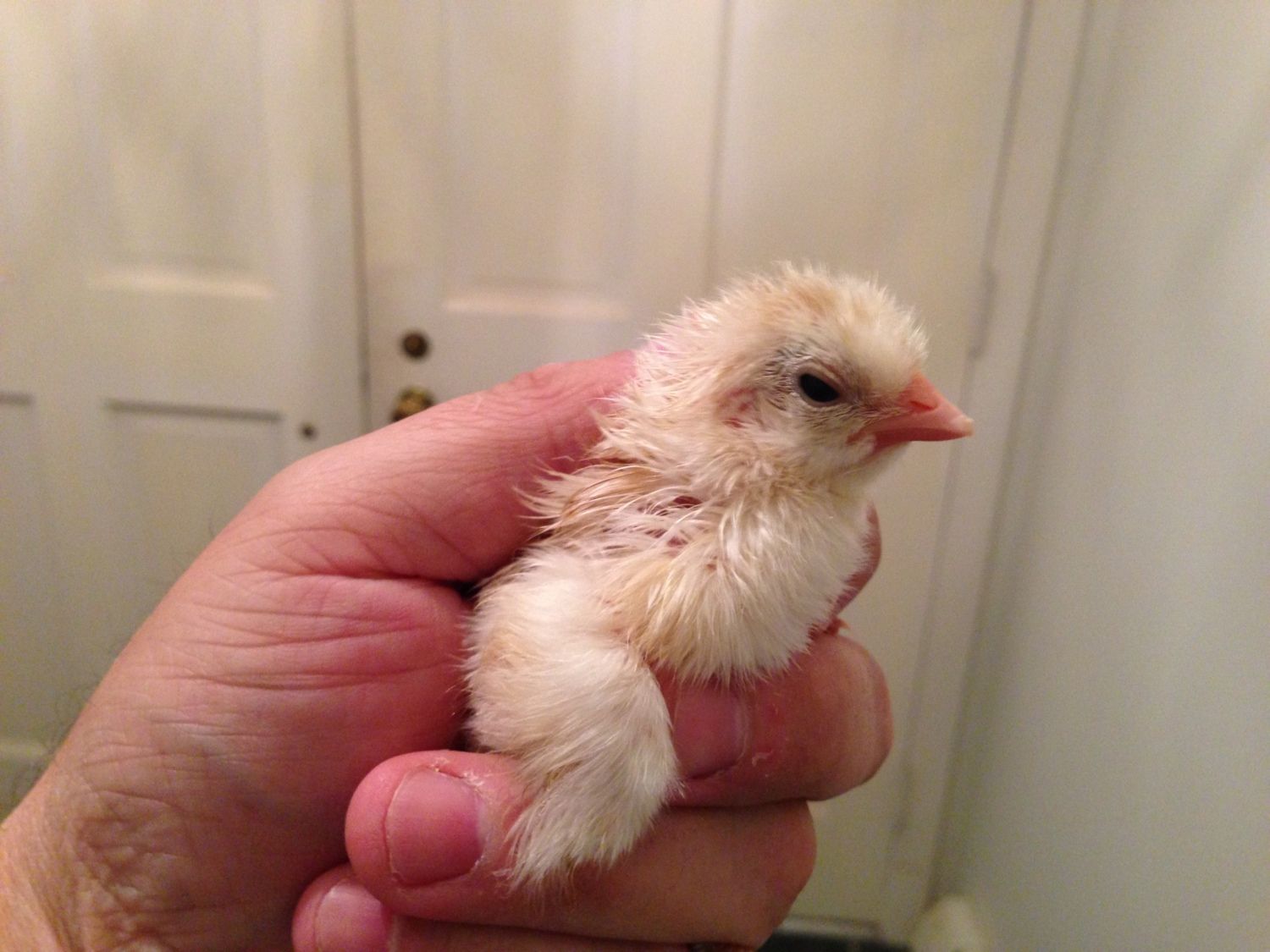 In case you are wondering what a Dominant White and a Cream Legbar cross would look like, I just happened to hatch one this morning. Only in this case it was a Cream Legbar roo crossed with a White Bresse hen. But the chick should look the same. In case you are wondering what this is, it would have blue (or willow green legs), white feathers, and lay a blue-green egg. Yours would look similar but would have yellow legs. Notice that the autosexing barring is broken by the Dominant White. When the rest of them hatch I will be able to test to see if my Cream Legbar have the fast feathering gene which would allow me to feather sex the chicks.