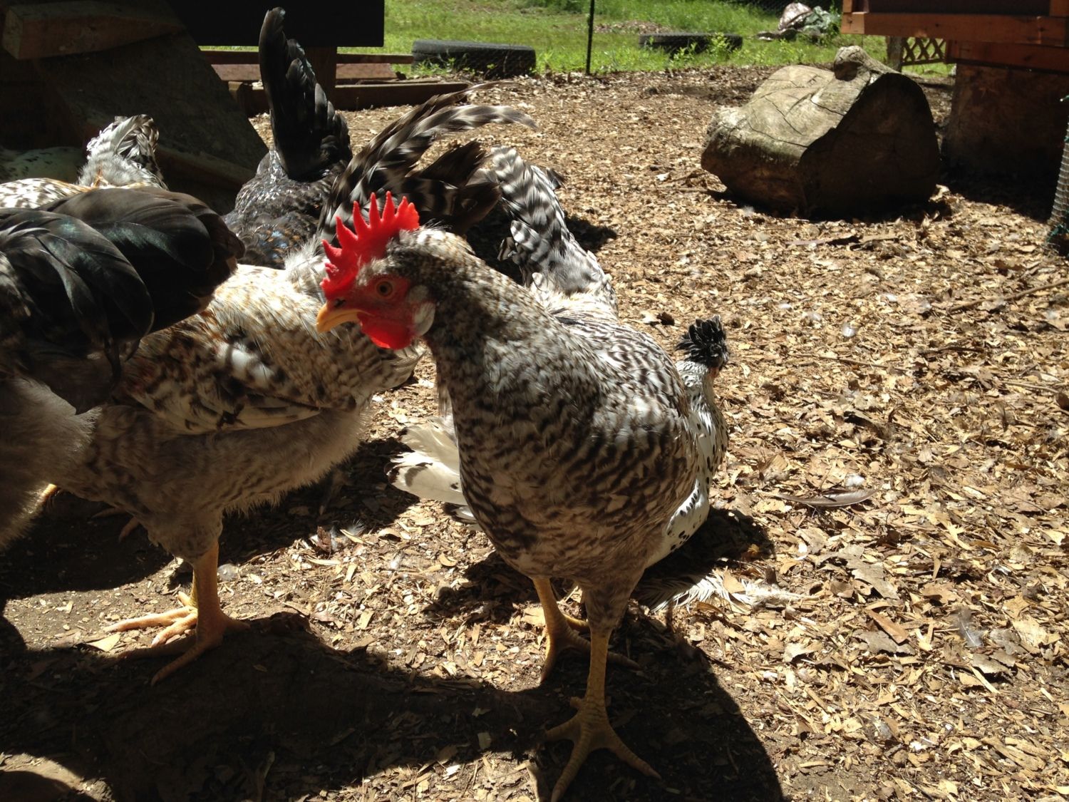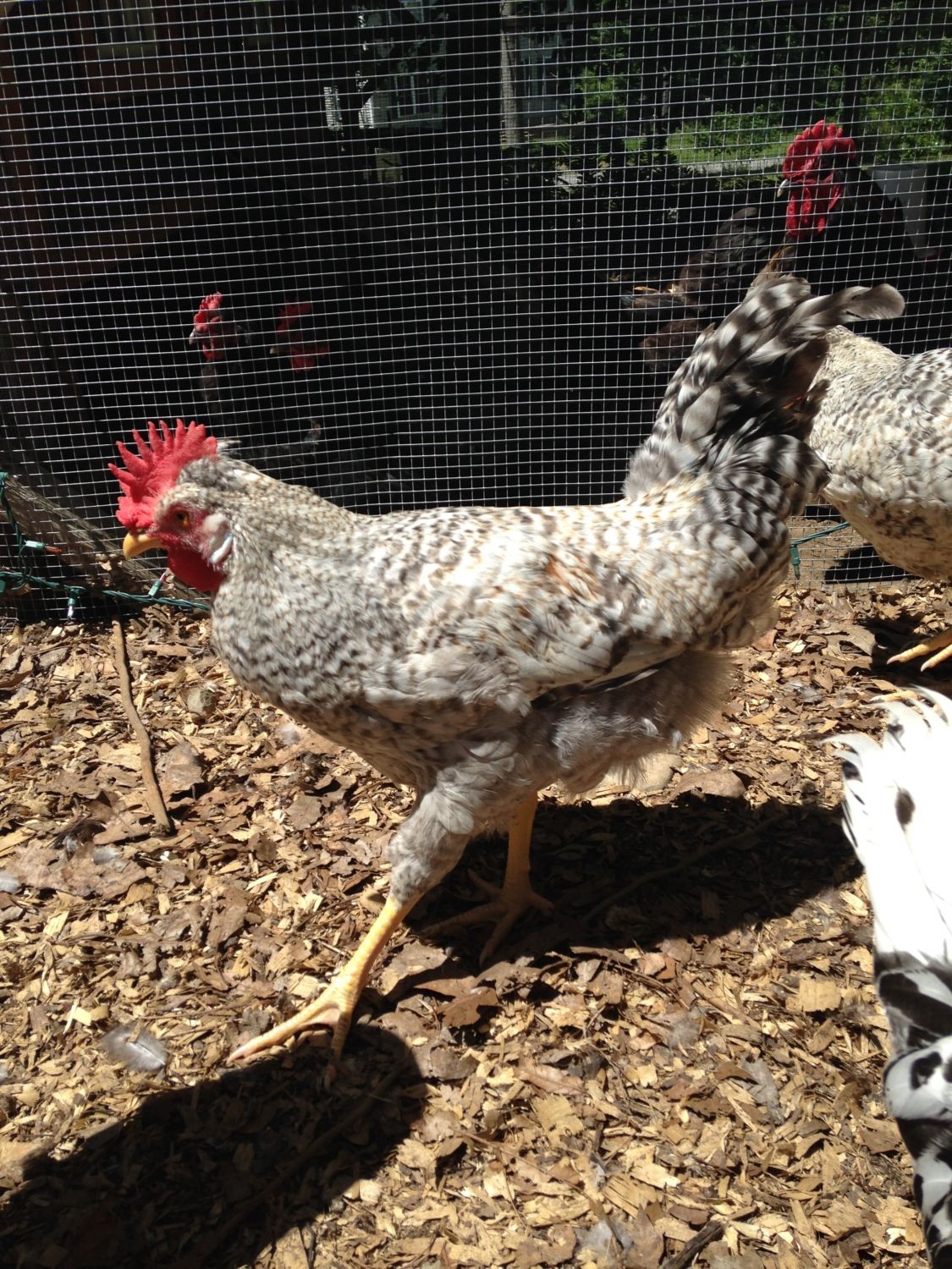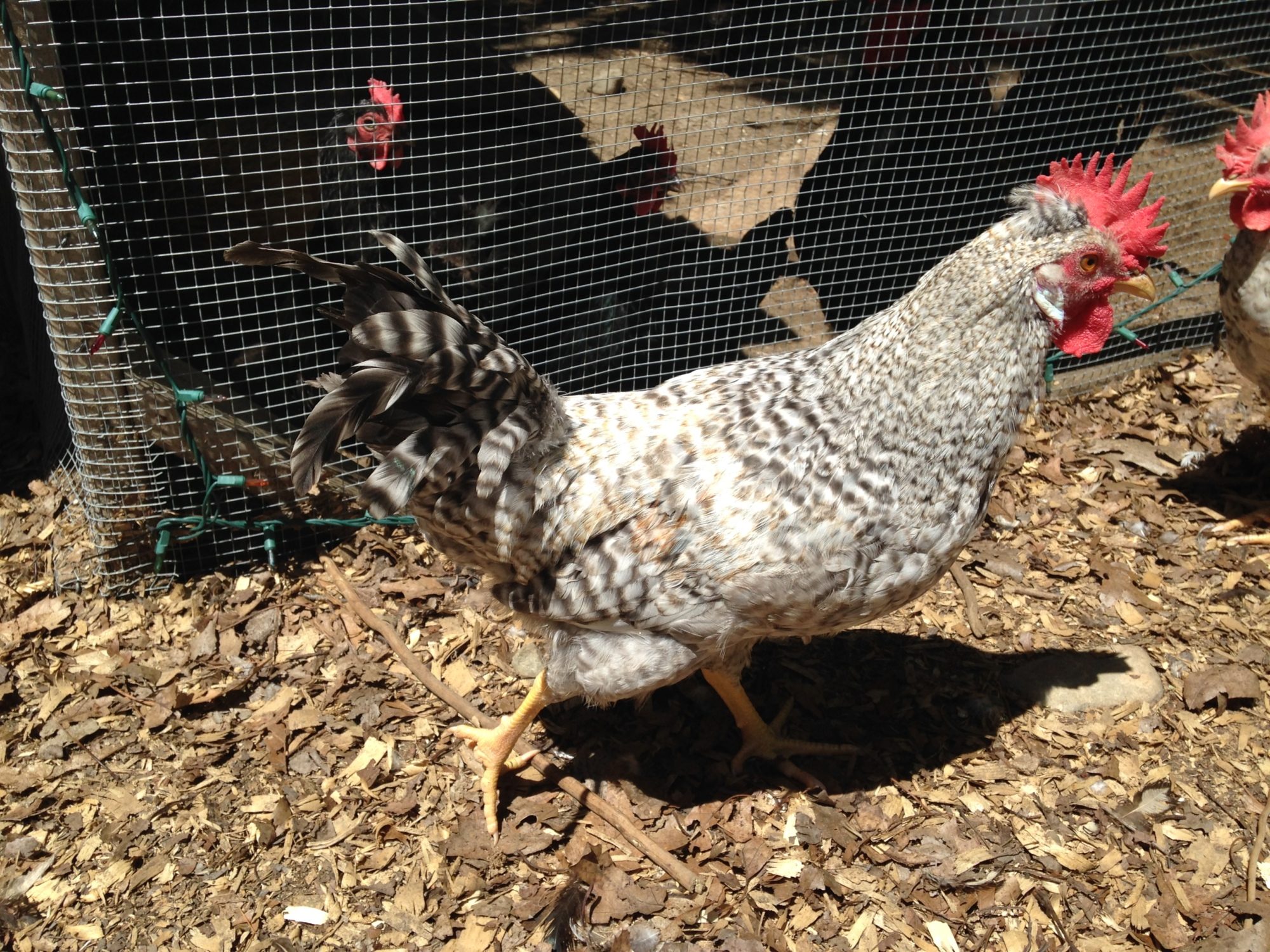 Last summer I received 4 pullets and 3 cockerels. One cockerel has beautiful coloring but a squirrel tail and a serious comb problem. I kept 1 hen and sold the rest because they have gold coloring. 2 out of seven were keepers. This is the pair that I kept.