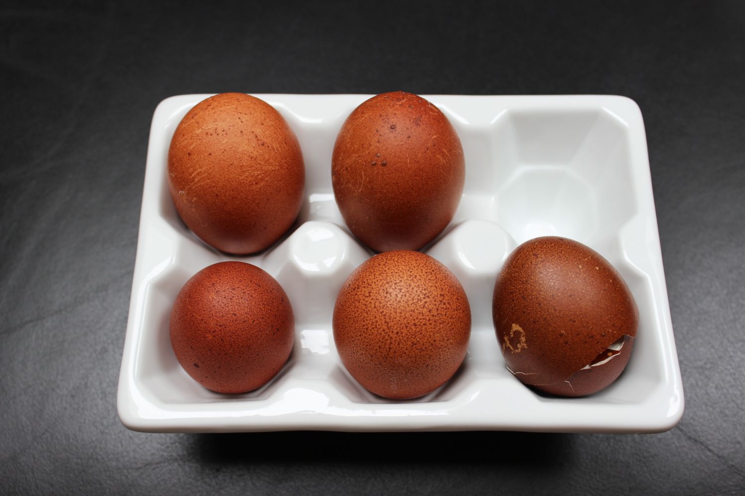 bottom row: the first two eggs from two 18 week old black copper marans and one of the eggs they hatched from