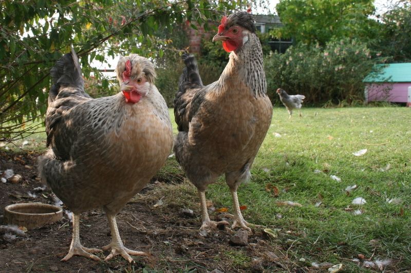 The two girls in the first photo are from different pairings. The girl on the left in reality is much lighter than the girl on the right. The girl on the right has a darker and smaller crest - not something I am breeding for personally. She was from Jill Rees x Mervyn Parry birds, the cockerel I am using this year was also from the same cross however I was quite disappointed with his small crest ( will upload a photo later).