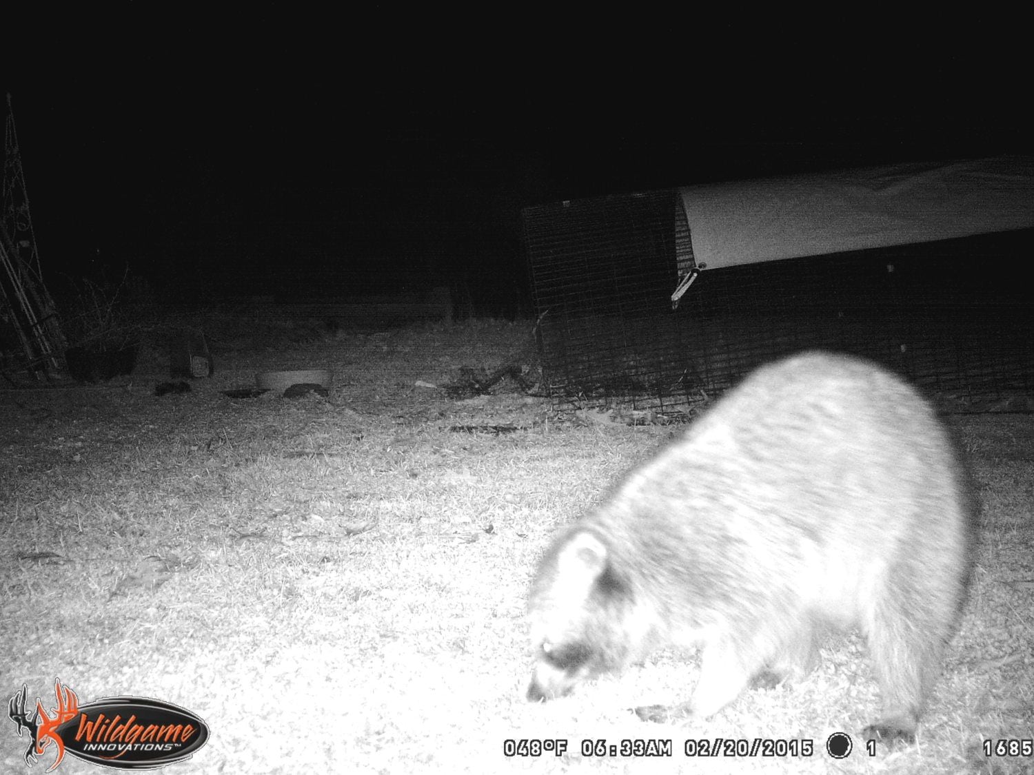 I know that the raccoons can't get into those coops and runs -- but I hate that they are there to bother the chickens -- 10PM 3AM and 6AM on most of the shots. I think THAT is why I have had a spate of 'mean rooster' incidents. They feel 'under attack'.