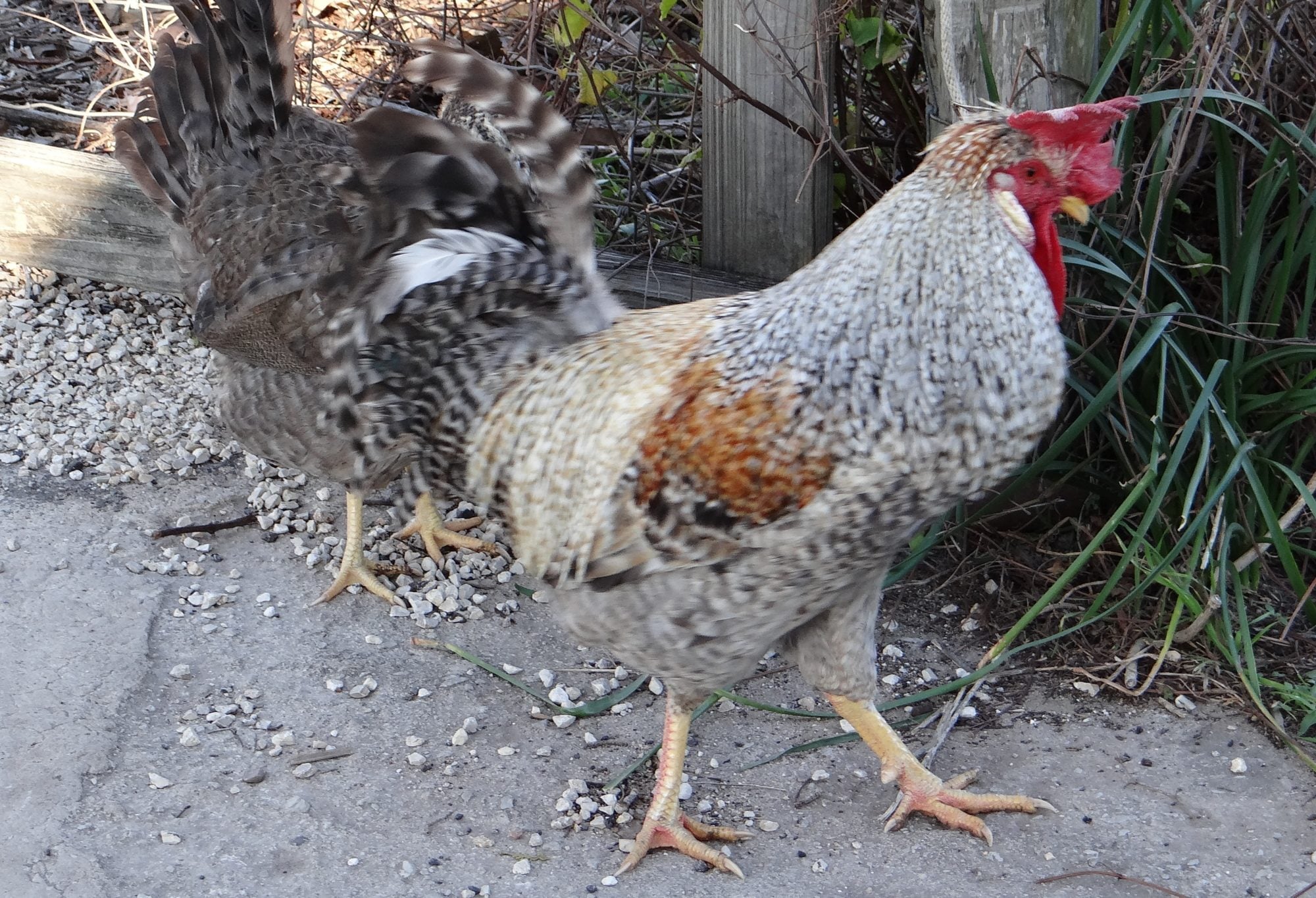 Interesting theory about place in the pecking order may affect development. I wonder if anyone has ever done any research on this. Since I single-thread and only have one rooster at a time (mostly -- unless one is confined totally by himself and in the process of transitioning out)-- they really are always the 'alpha' in the sense that there is no competition for them and they have to step up -- which they have done... The CLs have been exemplary in taking care of the hens and being protective....finding treats for the hens...etc. The one here now -- waits outside while the girl lays her egg -- clucks to encourage her...Yesterday I thought he was joining in the egg song..... (can a rooster sing the egg song? is he a bit confused as to his gender?)--- I'll bet that no one ever did a study on this... it is a bit idiosyncratic --
