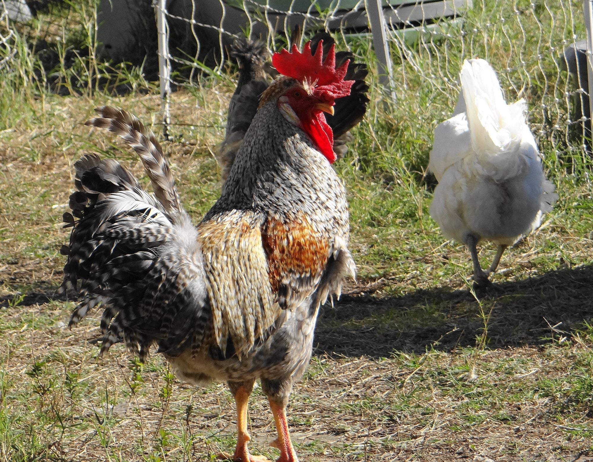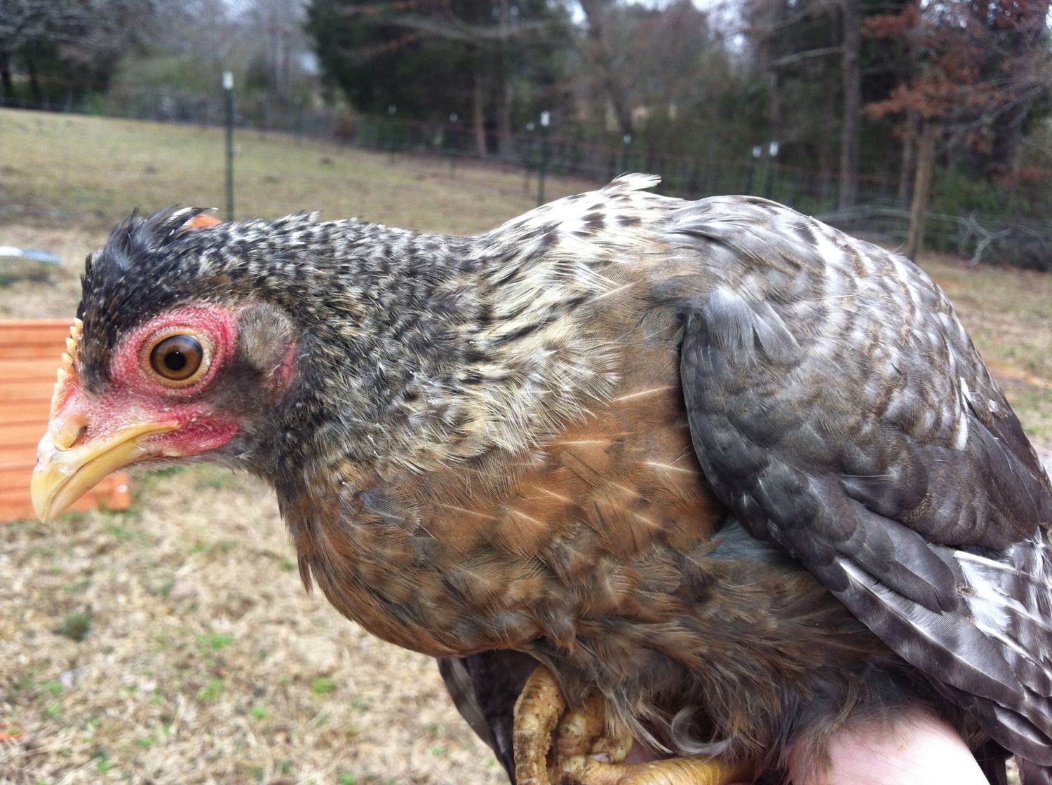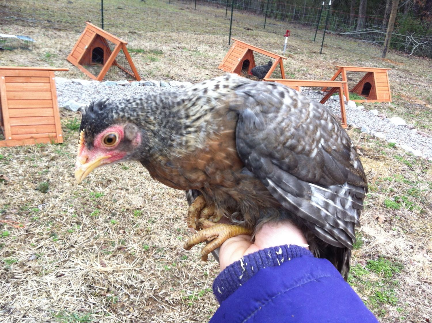 Your set up is so interesting to me... Does each hen have her own house? or do they use the background structures just to lay eggs? Your pullet has nice big eyes and looks very serious about it all.