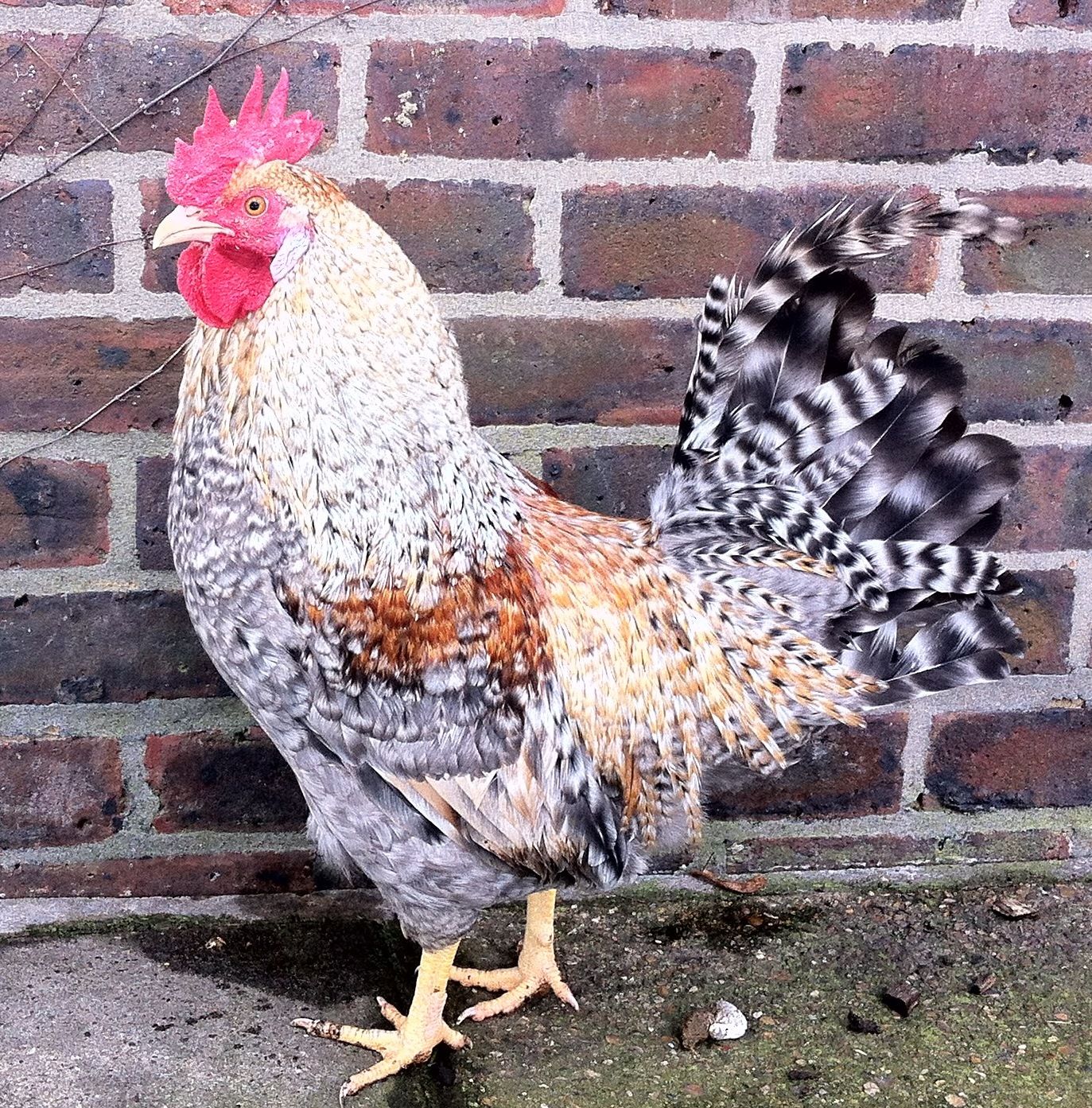 Increasingly I'm thinking I want those healthy birds, that are this beautiful, and I want blue eggs. I'm presently more interested in type that coloration. I particularly like the comb and wattles on this rooster, not too big, but still impressive. If he hatched from a nice blue color egg and if he has a good disposition, is healthy and nice sized, he would be a good candidate. Oh, also had significant autosexing traits. Is he related to your pretty hens or not? Seems to me that there is more focus on just coloration than on the whole package....