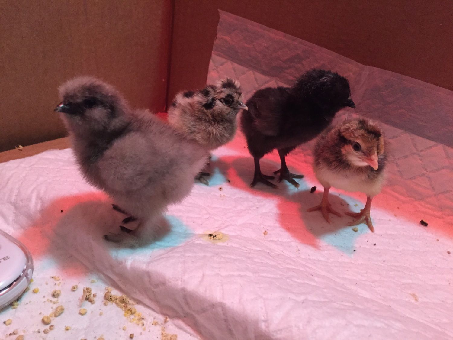After my ordeal with the muted color "pullets" that ended up being cockerels, I'm very happy to say that I'm the proud mama of a CL pullet thanks to ChicKat! Here's some pics of my pretty little girl that hatched last night and her hatch mates, 2 silkies and an OE.