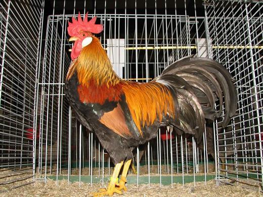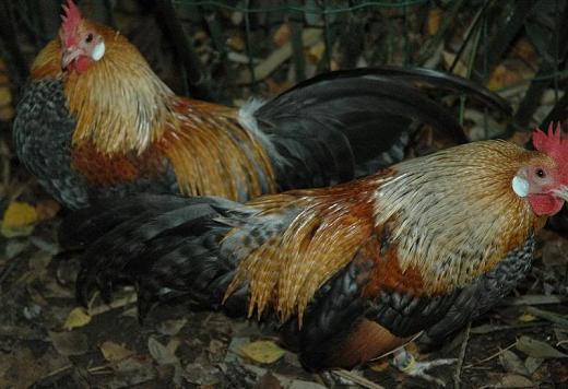 just look at a Silver Duckwing red enhanced male look(Salmon Faverolle as example, I know they are based on eWh wheaten, but they are phenotypically duckwing males) http://en.wikipedia.org/wiki/File:Faverolles_cock_and_hen_close-up.jpg