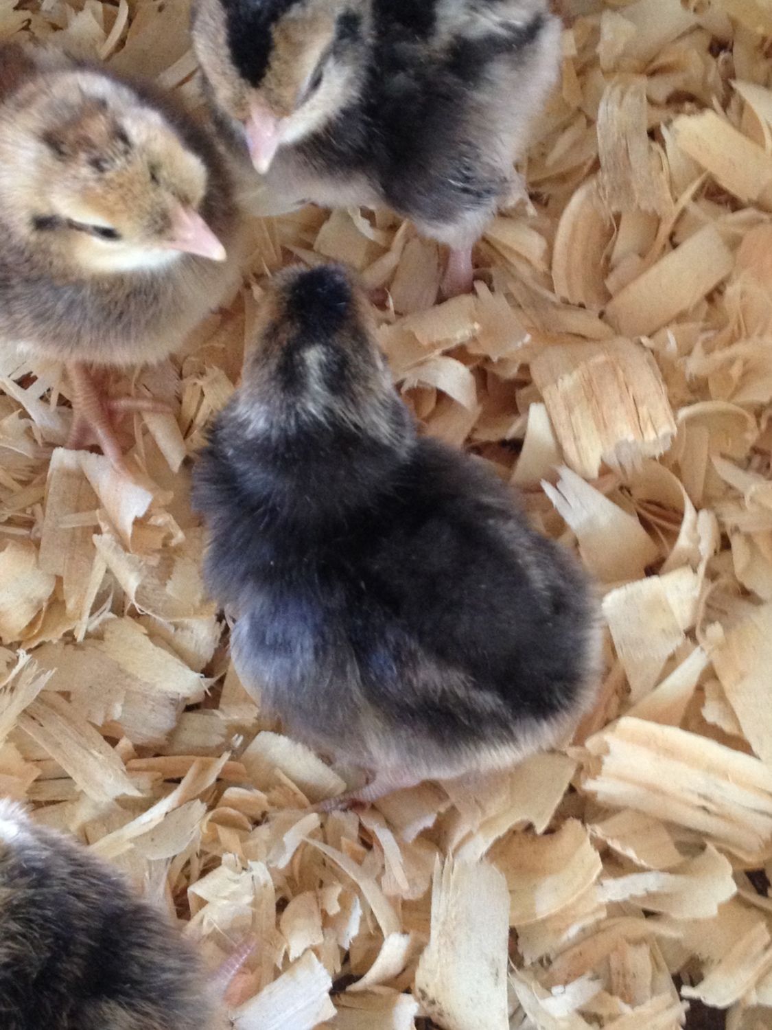 My first 5 Tinys are 2 weeks old. I have 4 pullets and one cockerel.