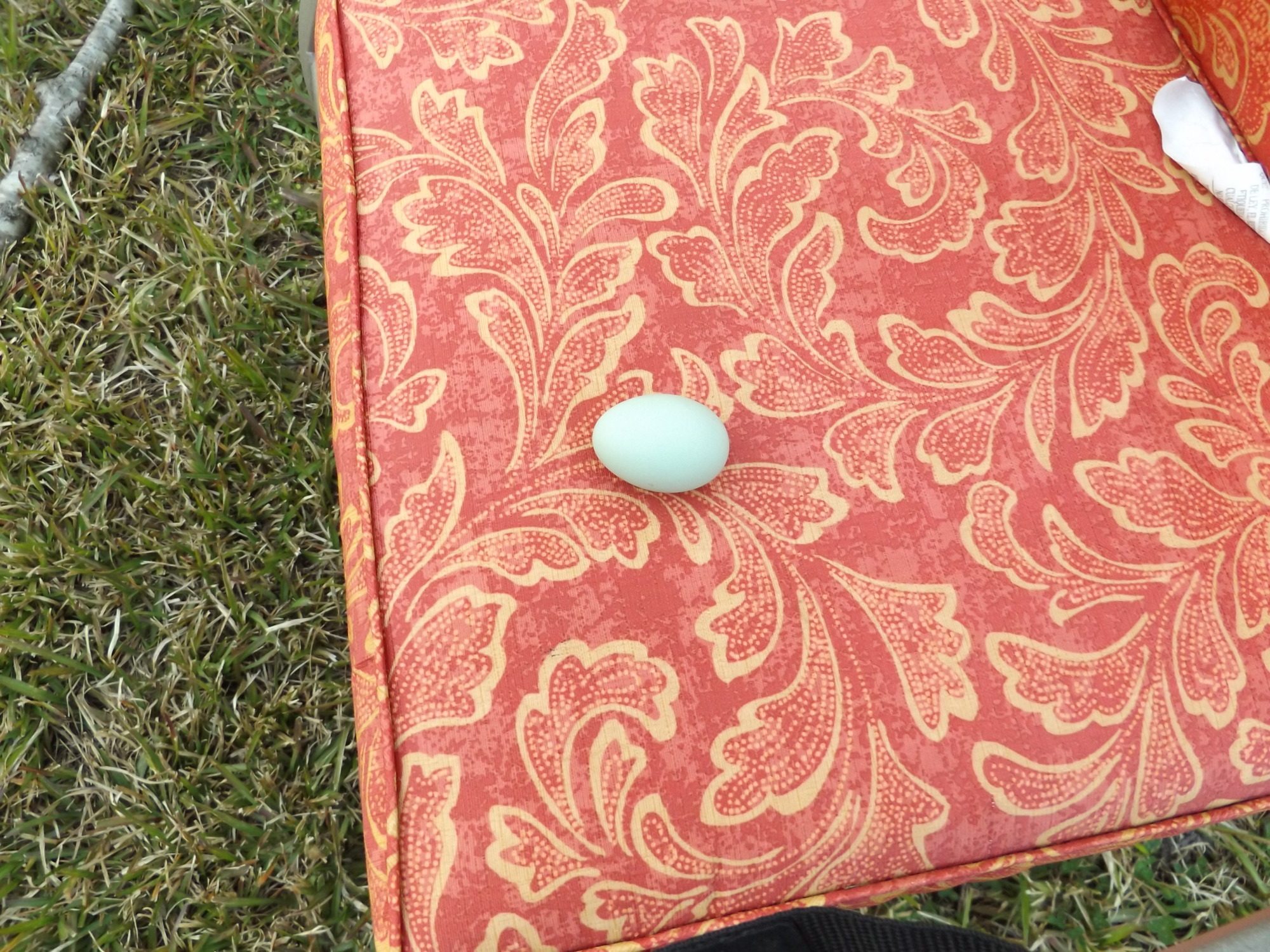 color is difficult to communicate via our technology isn't it? You've got different light sources too -- but most important thing, you got that egg. How old is your pullet?
