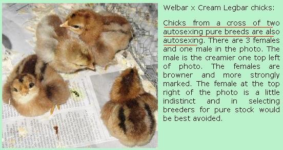 An autosexing breed will be easily sexed by the down color of the offspring. There is very little room for error when telling the difference between a male and female. The sexing accuracy level of an autosexing breed should be 100%. A person could get 99% but any lower would be considered semi-autosexing. A novice should be able to tell the difference between a male and female with very little instruction.