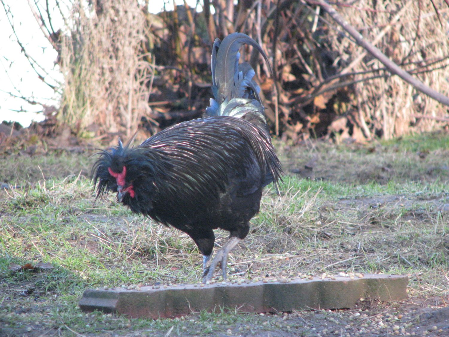 This is an Italian photo of a black Paduan, or Bearded Polish.