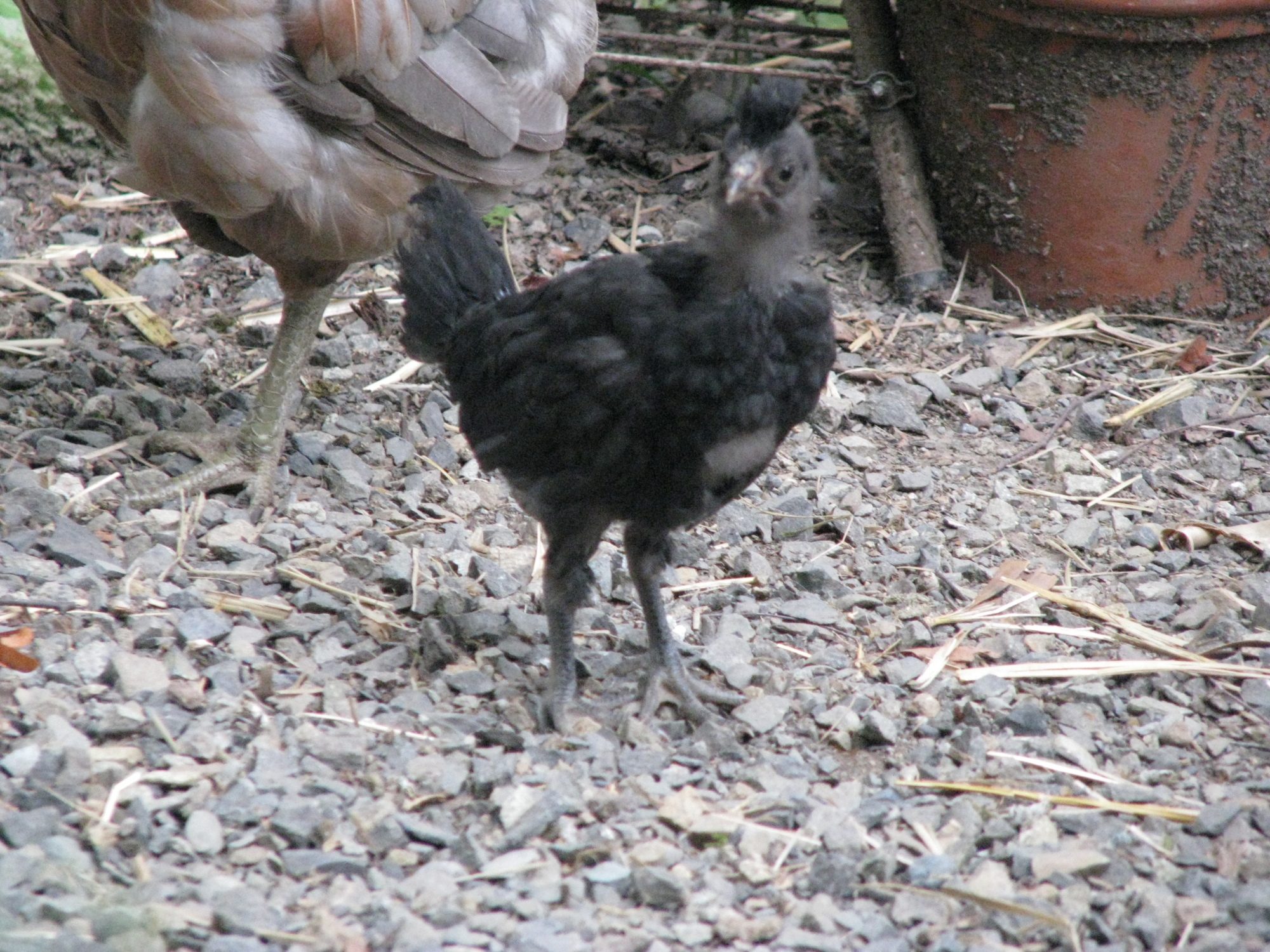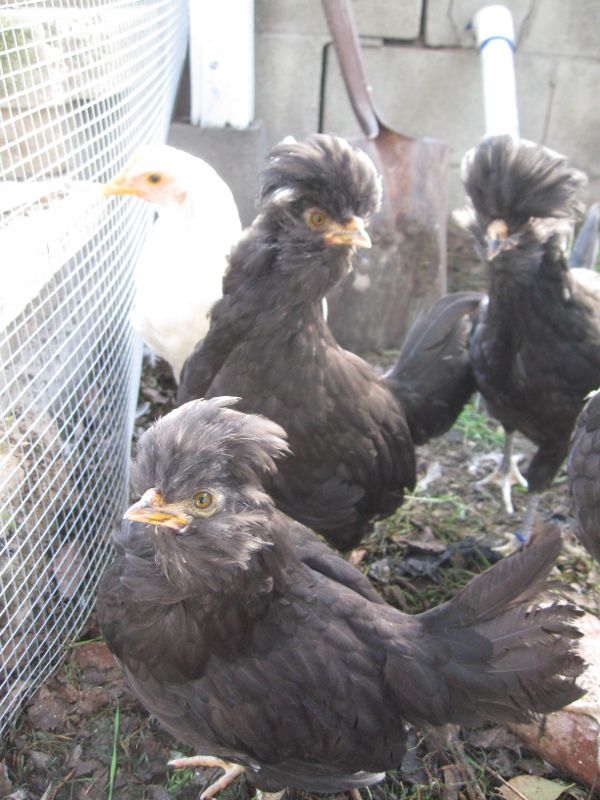 Awww, he's so sweet! Nice crest there, are you sure it's a boy? Where did you get him? I got mine at Ideal poultry. I made the mistake of giving the one boy with perfect red earlobes away. I didn't know he would grow out like that, but I visited him and his earlobes ended up with no white at all. I have no idea who has him now, but I kick myself for not keeping him, LOL. The one I kept was larger and I was going for size. At the time, his earlobes only looked a little whiter, but my Bouillon has noticable white white in his earlobes making them look pink :(