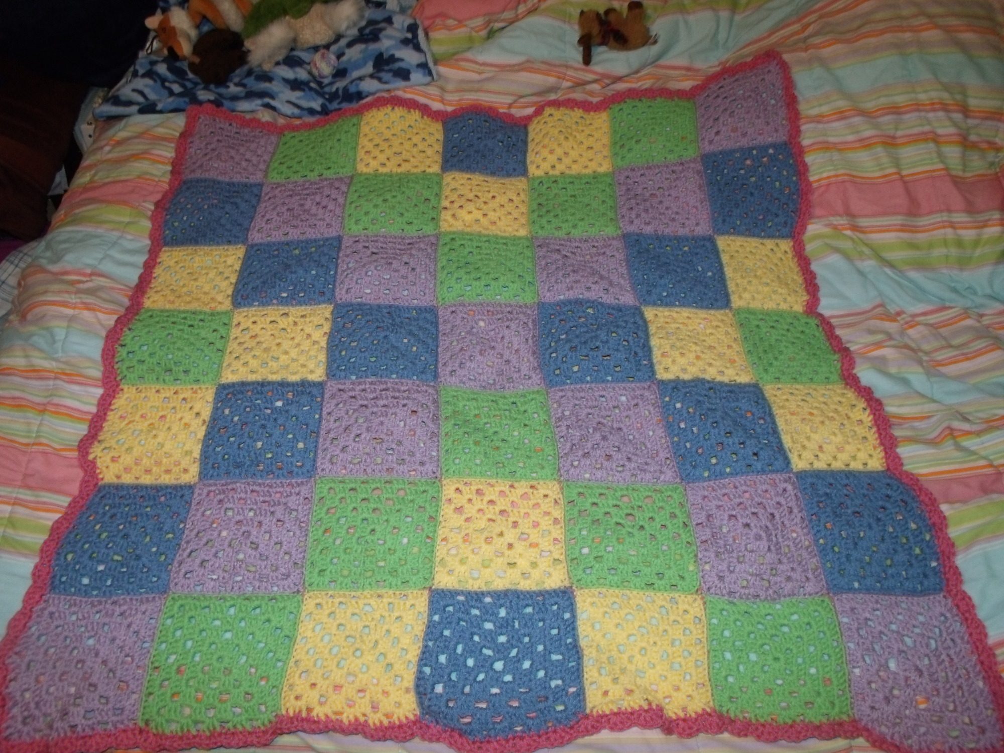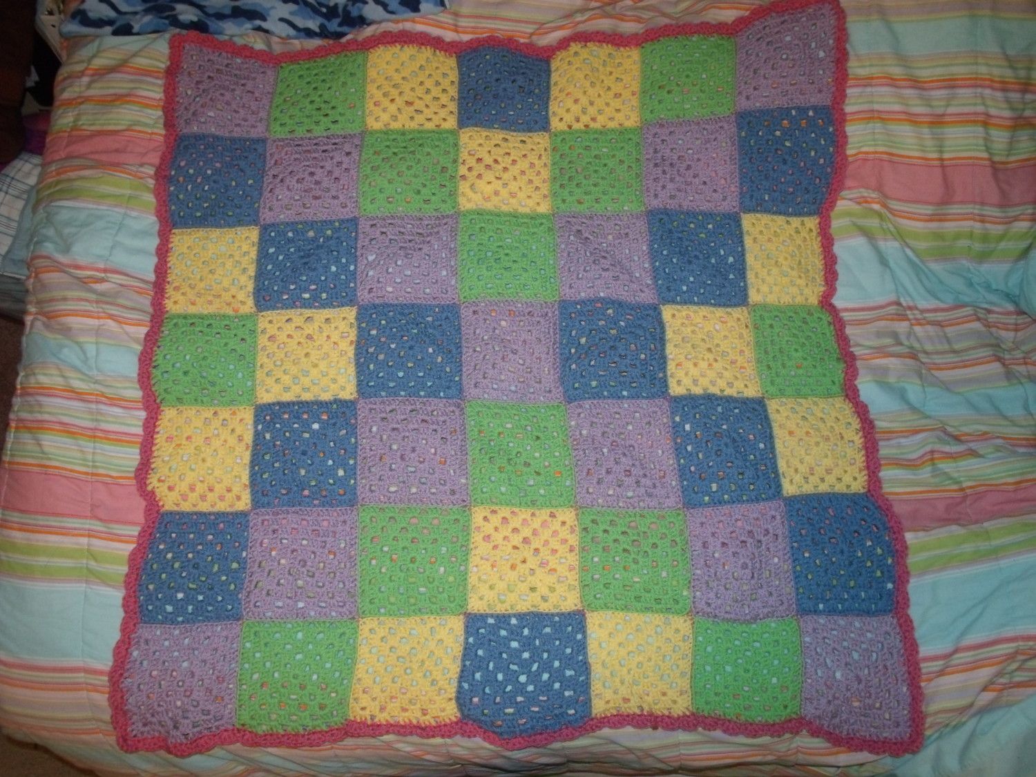 Blue squares were initially going to be green also but the green I started with was an odd brand and I didn't have enough. Pretty pleased with how it turned out though!