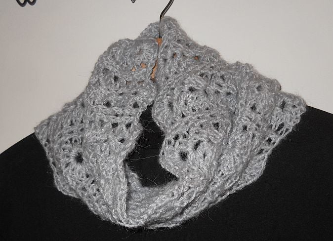 Thank you so much. Means a lot since I'm fairly new to crochet. No, these are really so easy, especially that 3" wide one. You'd be surprised how easy they are. The silver fuzzy one is the first time I worked with yarn with alpaca in it. It's the Alpaca Dance yarn by Premier, which is 25% alpaca, 75% acrylic. It's light as a feather and lots of yardage on a skein. It's really the exact same pattern as this shawl I made, which I realized once I started making it: