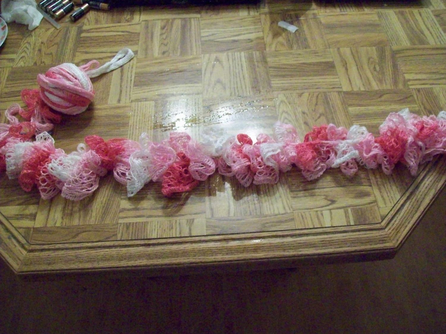 great job, you have more patience than me for sure! I started one with the same color and got frustrated because the 'lace' kept bunching up making it hard to find the top. I have to figure out a better way of holding it while working. I did attempt a leg warmer for my baby niece yesterday with a ruffle of Sashay on the top, turned out cute but she likes getting her fingers into the ruffles and yanking.