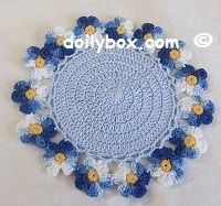 That doily is lovely. I haven't been on here in a while as my computer crashed and had to buy a new one. I just finished an afghan for my daughter for her birthday and I'm working on two tablecloths for two of my daughters for Christmas. I have to start early since grandchildren and greats seem to pop up and have to stop and make baby blankets and hats, etc. I love the vintage doilies. I have dozens of old timey patterns if anyone is looking for a certain pattern. Some of my patterns date back to the 40's. Some are floral ones also. I like the forget me not pattern also. Blue is my favorite color.