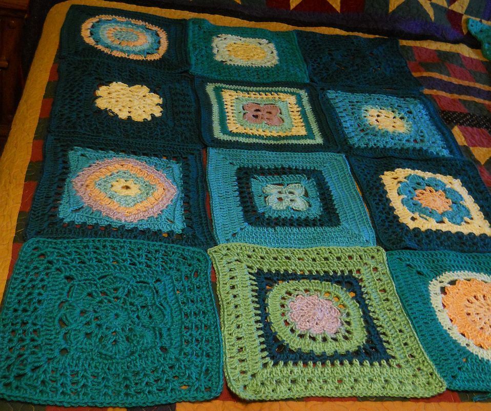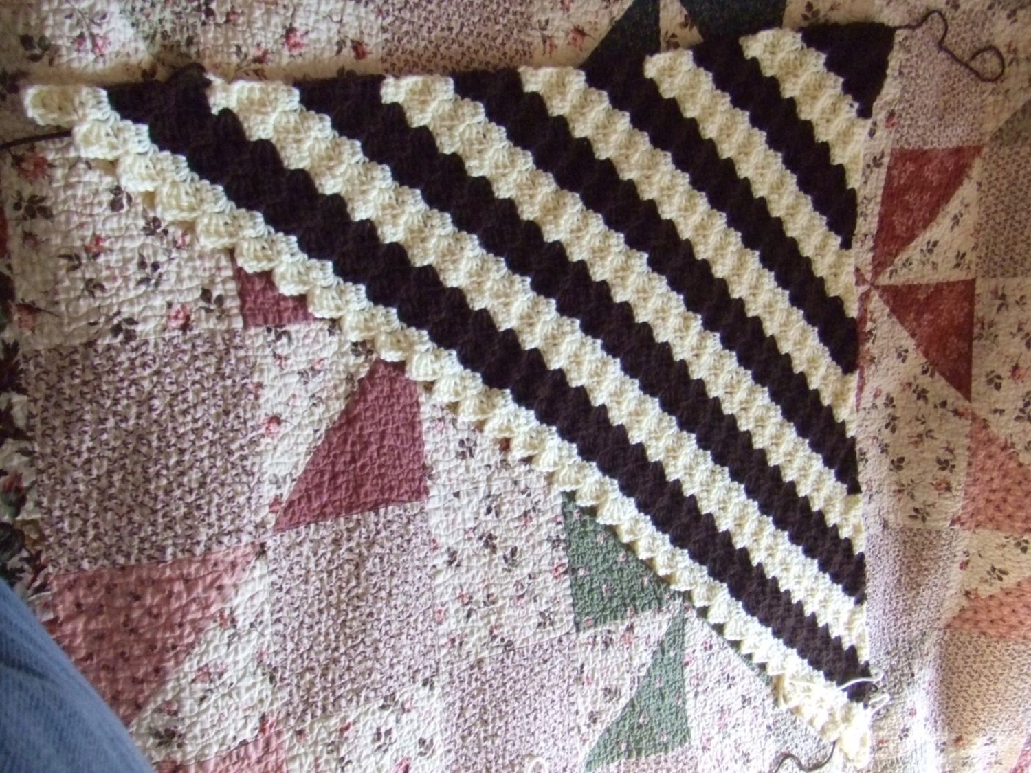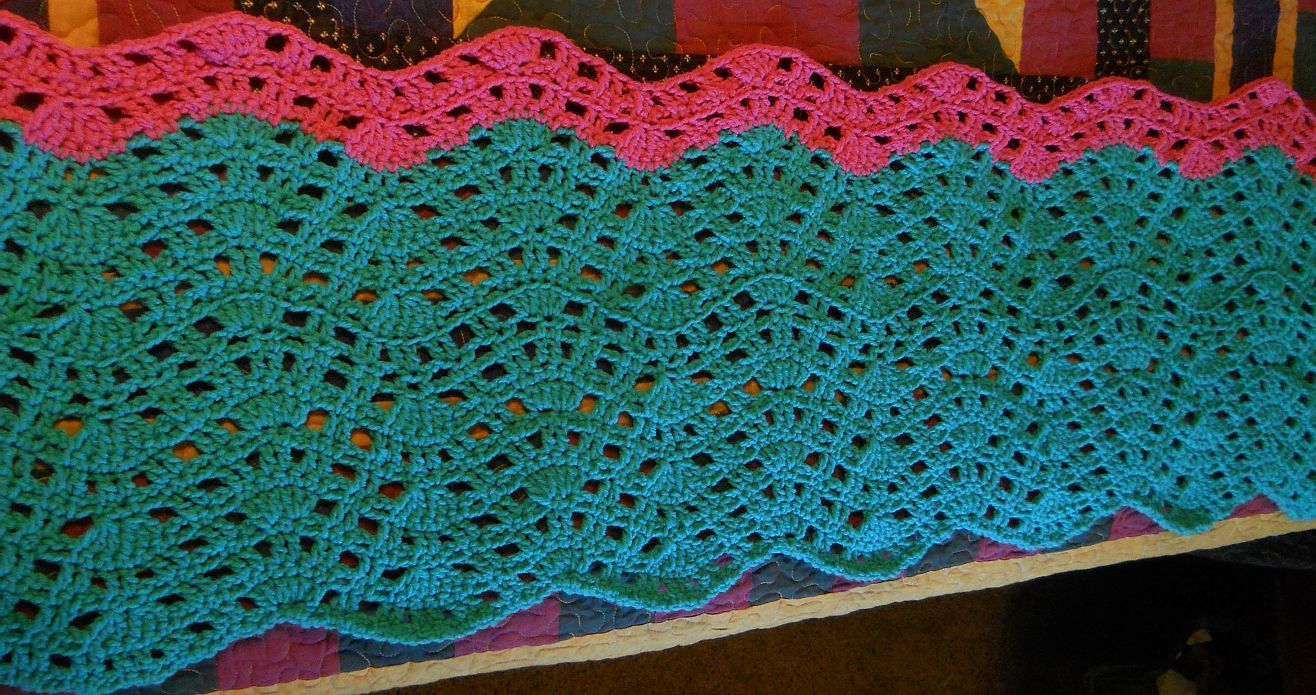 You probably already posted this, but what are you currently making? I agree, the chocolate color would look really good with the pink and teal colors.Not sure I have time for another forum, but best of luck with that! How is your afghan coming along? After going up a bit on the hook size suggested, from 5mm to 6.5mm, to make the Wavy Squares afghan 38.25" wide, this ended up being 55.5" wide.Sooooo, will definitely need more than the 3 skeins of yarn I have. I used one entire skein in the Jadite color, going to use the entire Candy Pink color, then use the 2nd Jadite color and after that, I have no idea because unless I order it, I sure can't find those colors in the Red Heart With Love at Walmart. What other color would look good with this teal green and bright pink if I choose a 3rd color? Black? Purple?