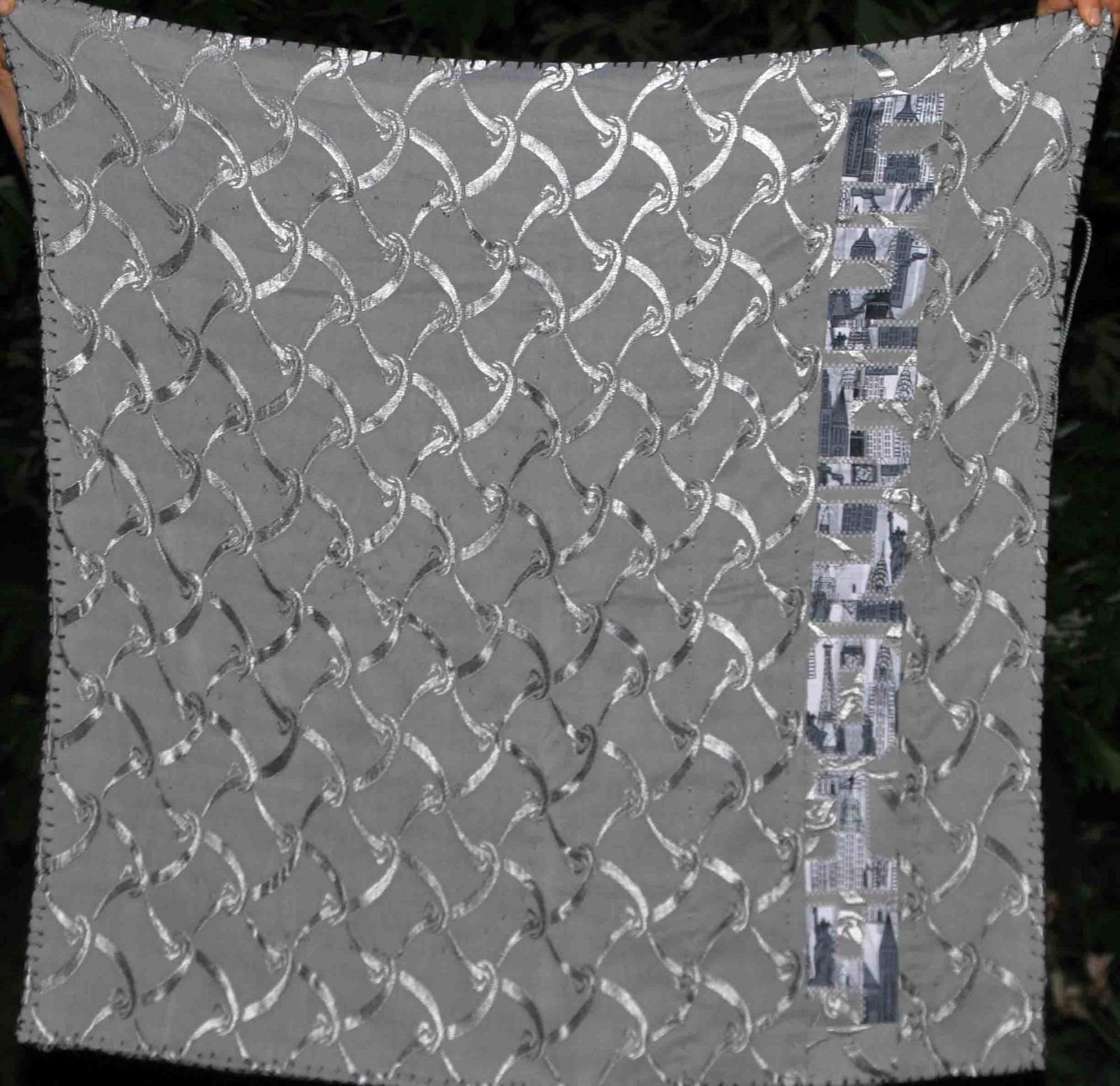 The fabric side. Hard to see in the pic but in real life you can see the quilting stitches. So you can see the infinity sign and on the date column side you can see 3 stitching lines to signify the "three strand cord" of God in the marriage. The hard geometric lines of the city buildings in the date column w/ the soft flowy feminine lines of the brocade. The date in the column being there but not really obvious was a conscious descision.