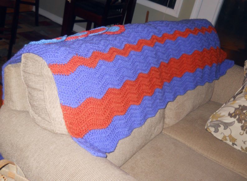 Thanks! The orange and blue are my HS colors as well as my sons' (different schools). I call it the Team Colors Lap Blanket. I have it with the bonus coasters for $39.95 on our site, so you're right about the prices they're offering them for. Took probably $18 in yarn, I think, and lots of hours of crochet. Not any real profit there.