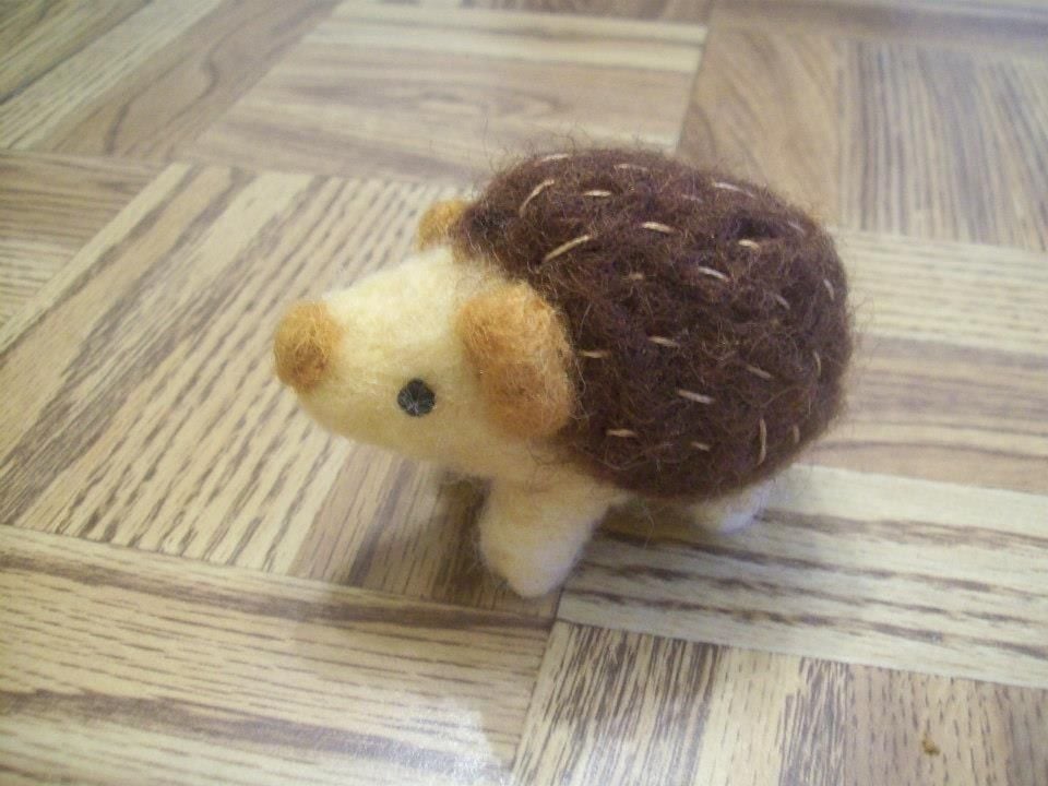 i didn't know you could needle felt something on to something crochet dose the crochet item have to be wool too? I needle felted this little hedgehog a while back