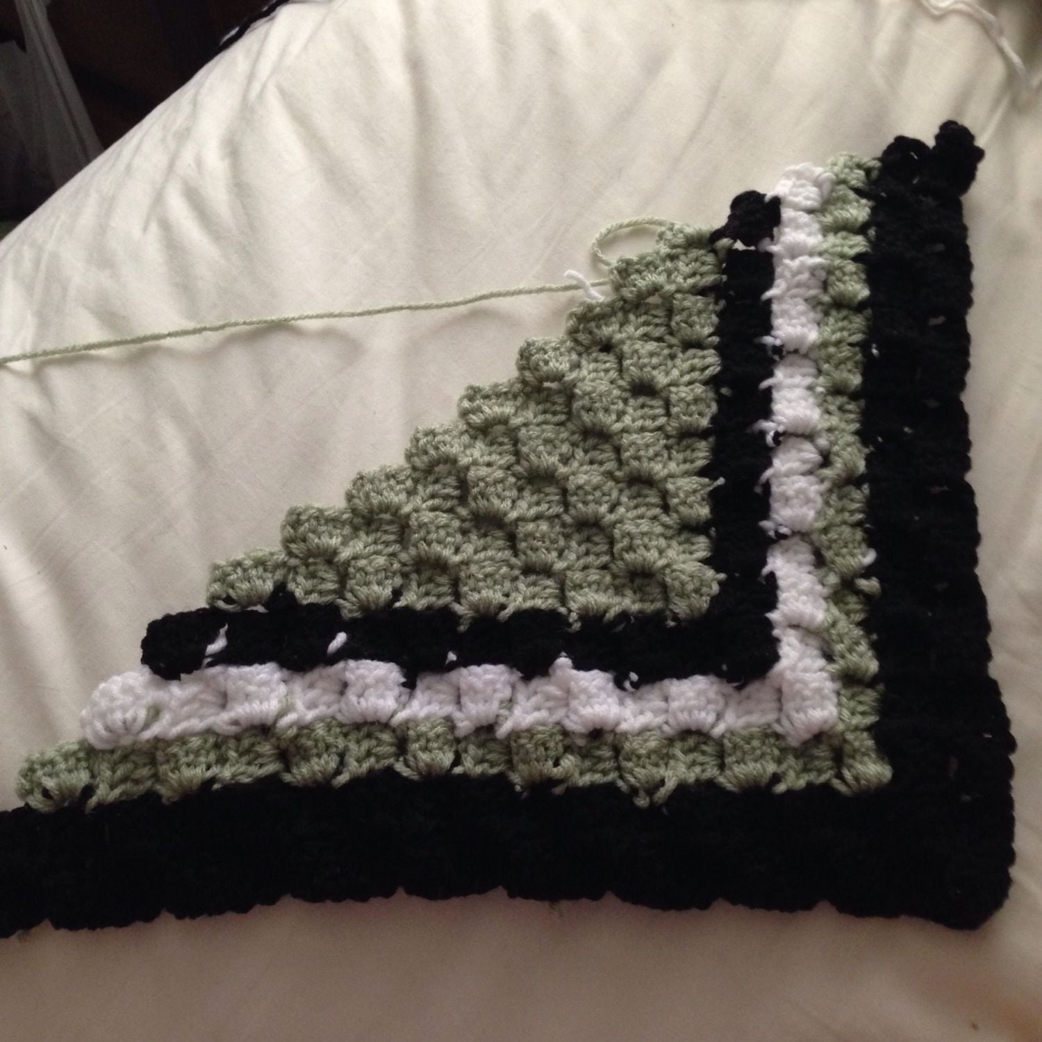 http://www.redheart.com/free-patterns/crochet-corner-corner-throwI did not use a pattern...I just added a few rows to create the border.I'm on my first one and enjoying it. I love your pattern, is there any chance that you would share? My pattern comes from Red Heart but of course I changed the color patternhttp://www.redheart.com/free-patterns/crochet-corner-corner-throw I like how yours form border stripes. I've been doing a google search for a couple of hours now with no luck on finding a pattern like yours.