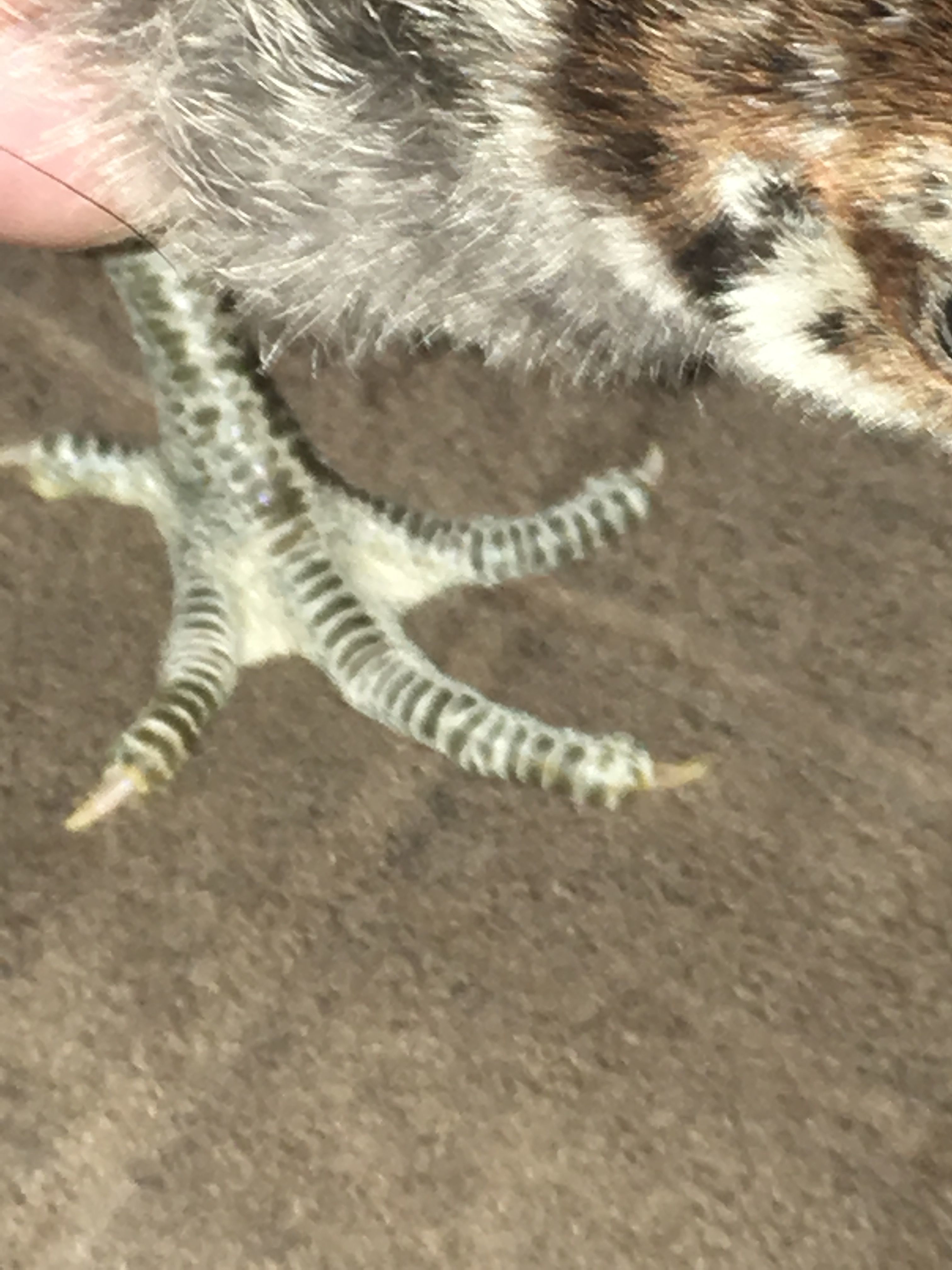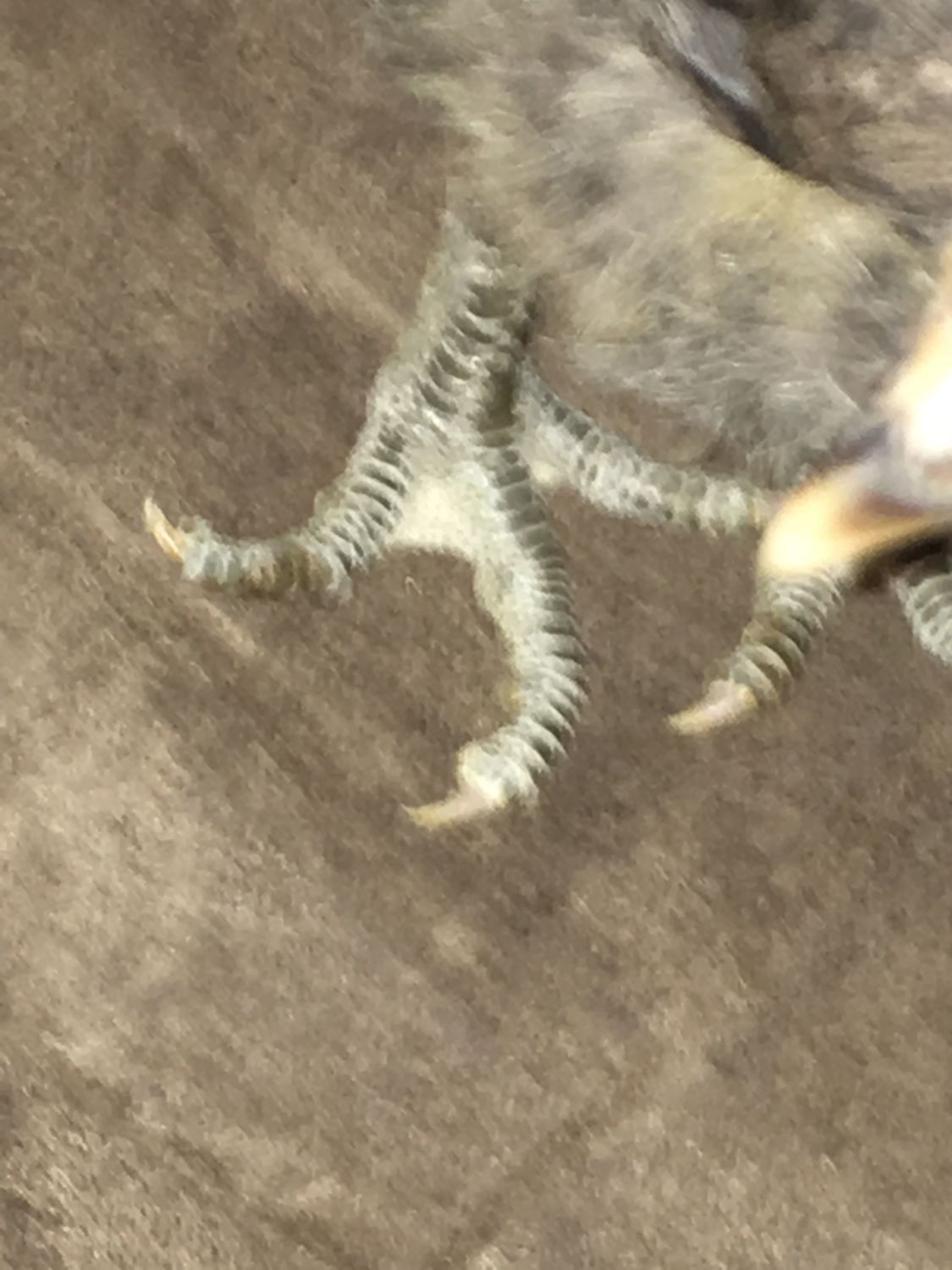 I'll try to get pics today and post, but what can happen if not corrected? She is 3 weeks old now, I didnt think much of it since it didnt affect her at all she still perches and runs and scratches and all. sometimes when she stands they are straight too it just seems sometimes she lets them turn. I can't explain it correctly, it wasn't like most of the pics on the links that were sent it is like the one pic after the feet were fixed instead of pointing straight out the end of the middle toe and the end of the outer toe turn outwards.and sometimes the nail lays on the side but not always. And everything goes completely normal when she perches. I'm not sure is three weeks too old for the treatments?